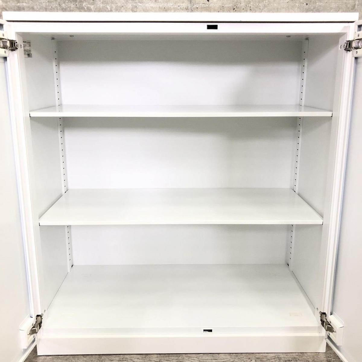 【収納物がひとめで分かる両開き戸タイプ!】■コクヨ(KOKUYO)製 エディア(EDIA)シリーズ 両開き書庫 ローキャビネット H1130㎜ ■天板・ベース付 ■ホワイト ■シリンダー錠【IB】