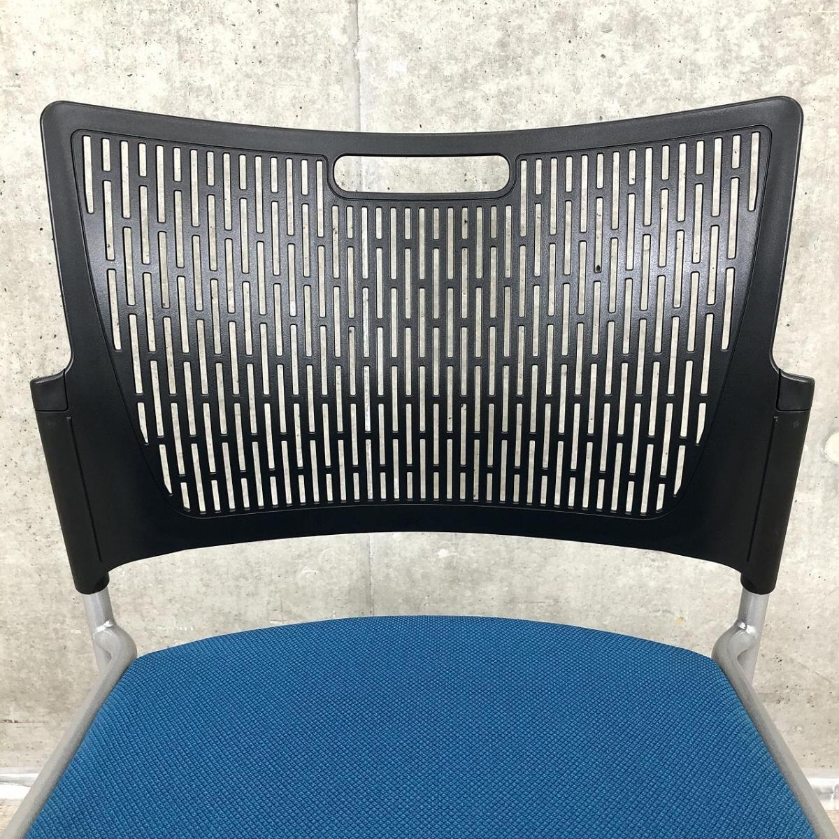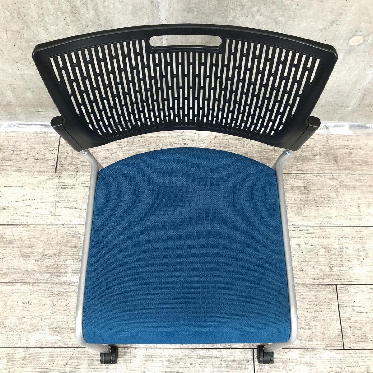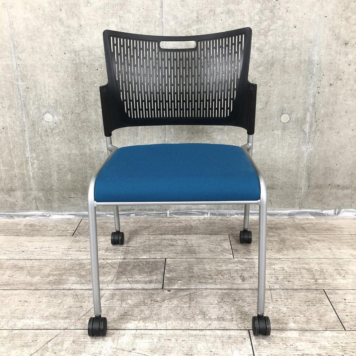 【重ねて収納可能!さわやかなカラーとシンプルデザイン!】■オカムラ製 レーテ スタッキングチェア ミーティングチェア ■キャスター付き ■座面ブルー×背面ホワイト【2412】弊社使用欄【A00990049】
