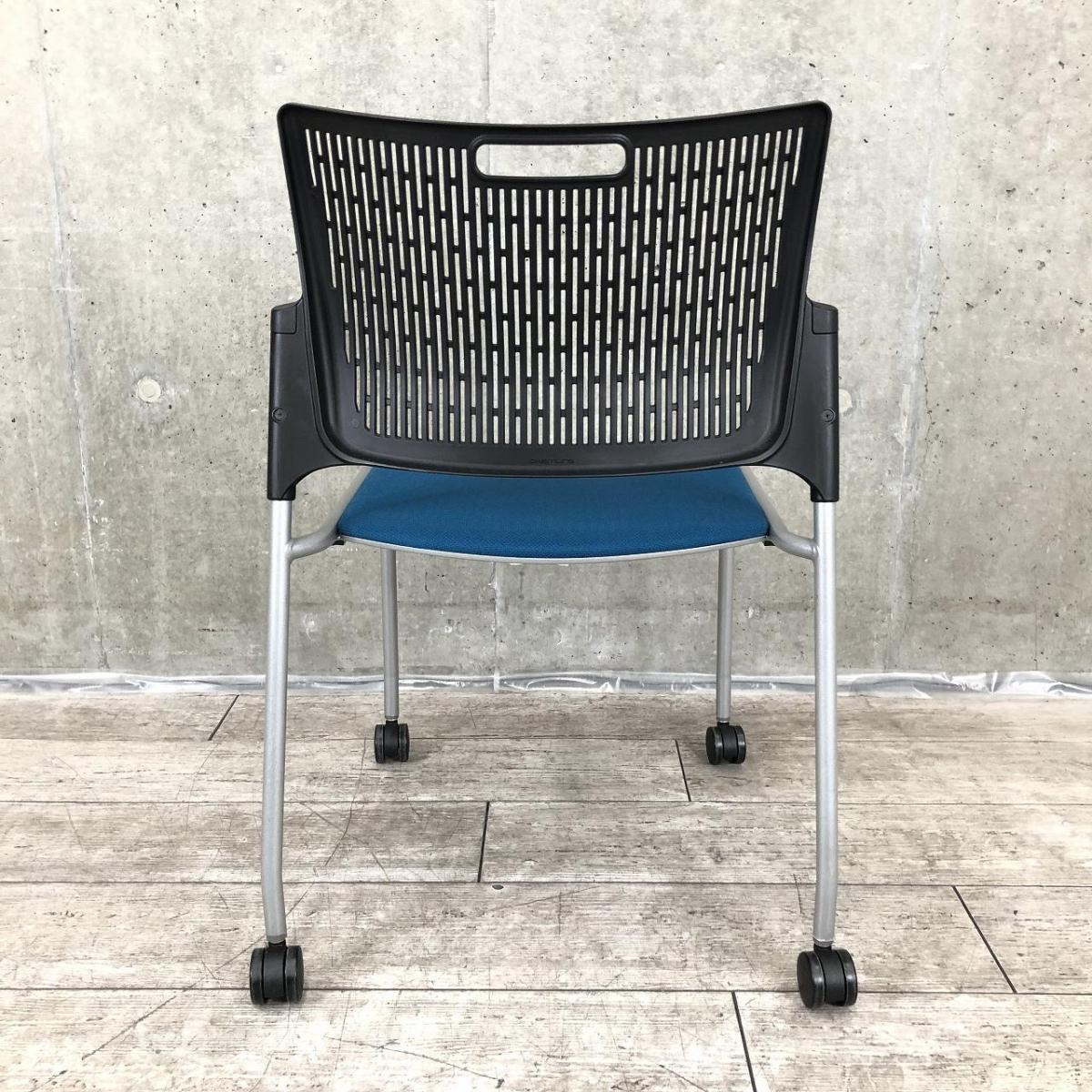 【定価約3万円】【重ねて収納!オシャレなカラーとシンプルなデザイン!】■オカムラ(okamura)製 レーテ(RETE) スタッキングチェア ミーティングチェア ■キャスター付き ■座面ターコイズブルー×背面ブラック樹脂メッシュ ■弊社使用欄【A01015776】【T12】