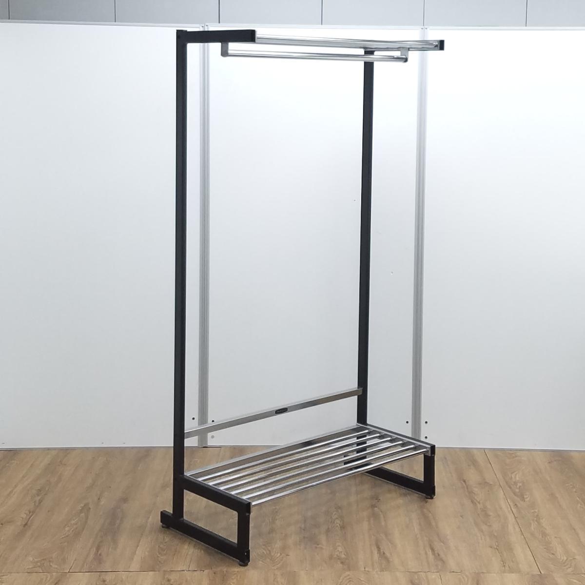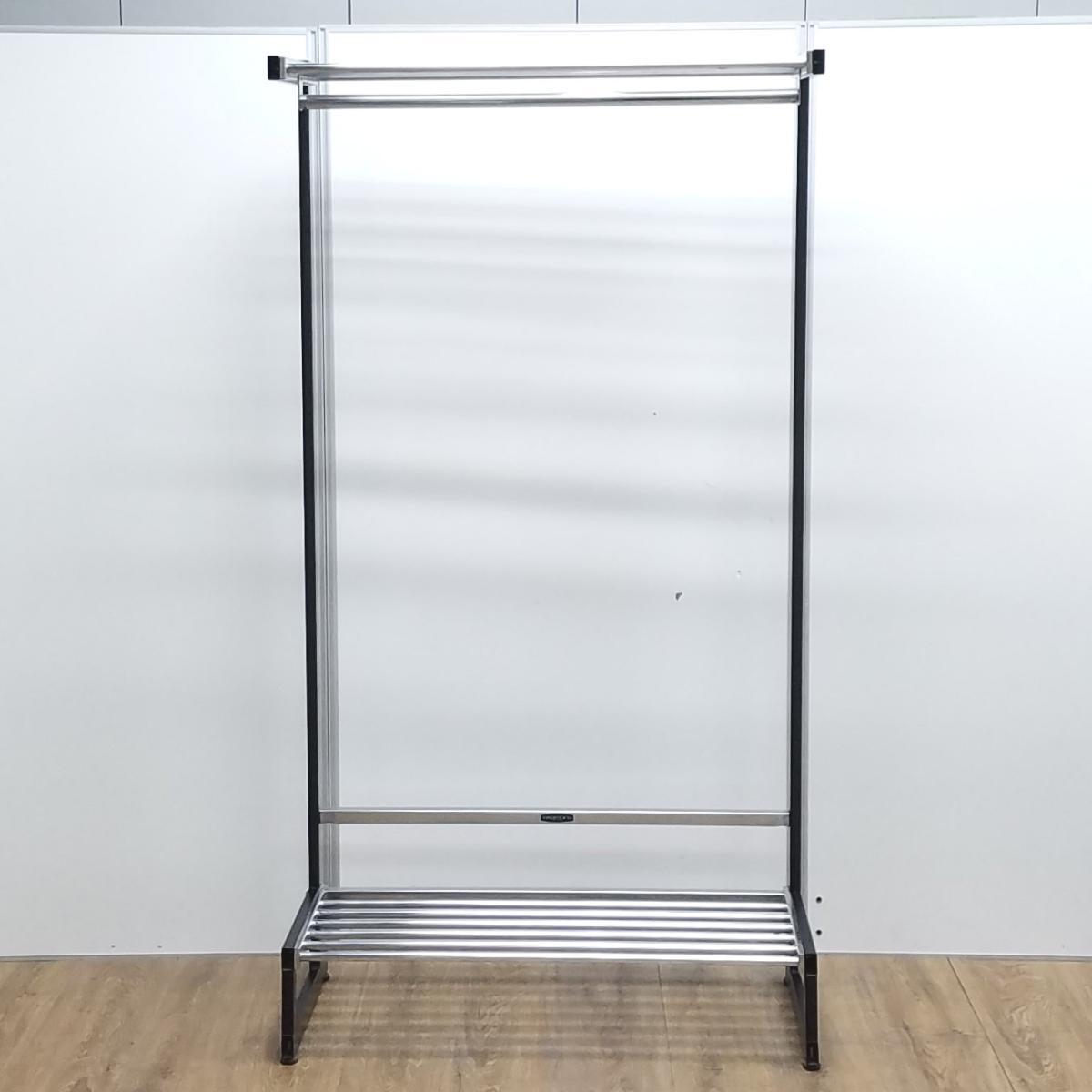 【上下の網棚で収納力アップ!アウターや衣類の収納に便利なコートハンガー!】■コートハンガー バータイプ W900×D470×H1710㎜ ■上下に網棚付き ■ブラック- 京都東寺店
