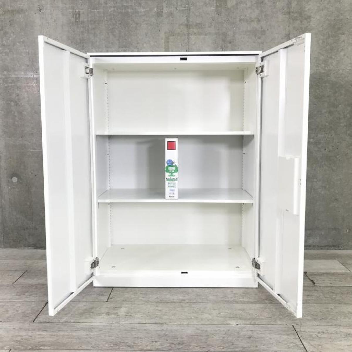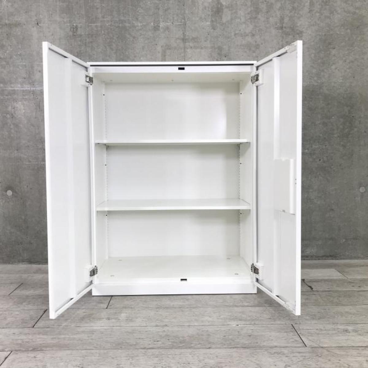 定番サイズ オカムラ/レクトラインシリーズ カラー:ネオホワイト 両開き書庫 鍵付き シリンダー錠 天板無し