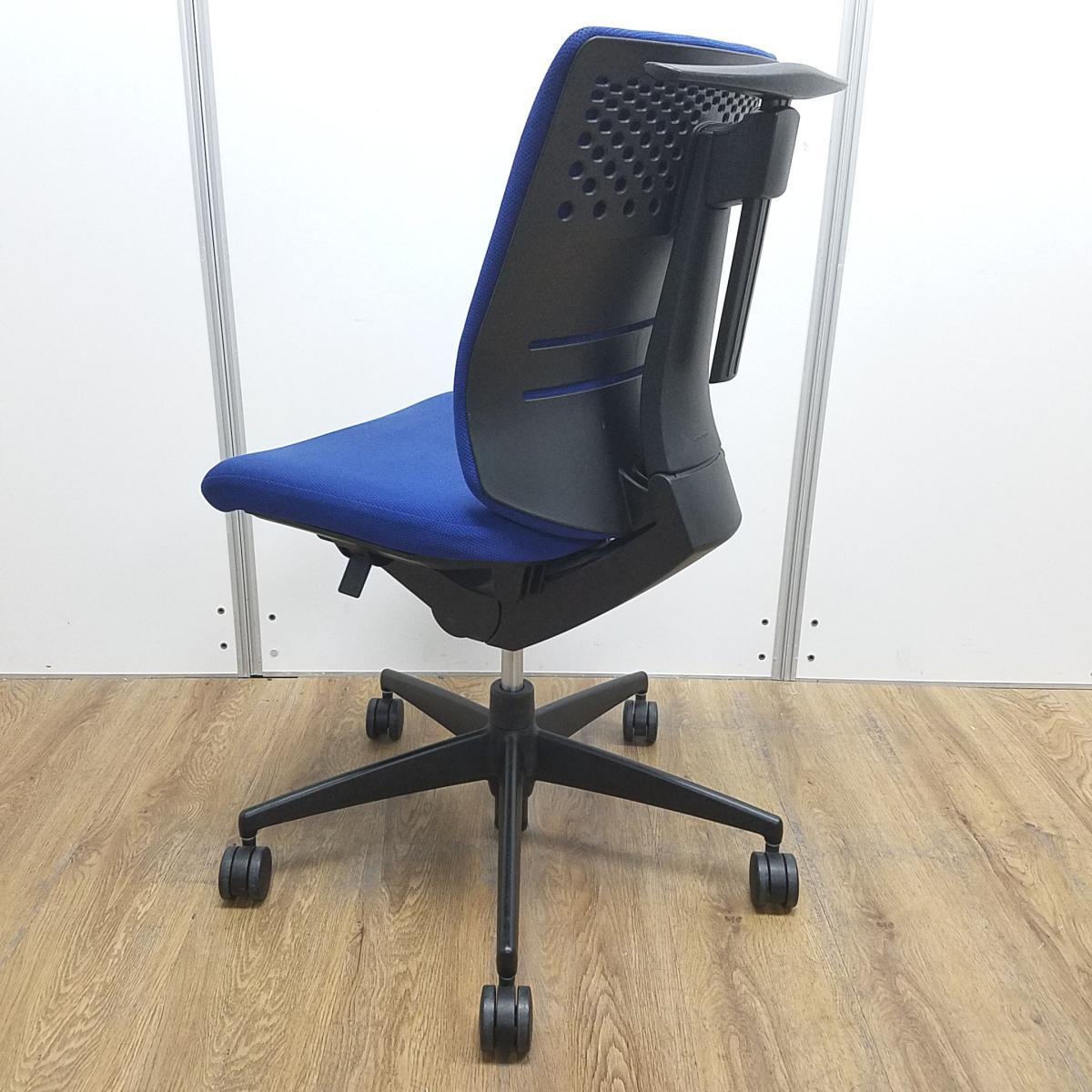 【コートハンガー付の人気チェア☆】◆コクヨ/ウィザード ブルー 青 ローバック 肘無 コートハンガー付き オフィスバスターズ心斎橋店