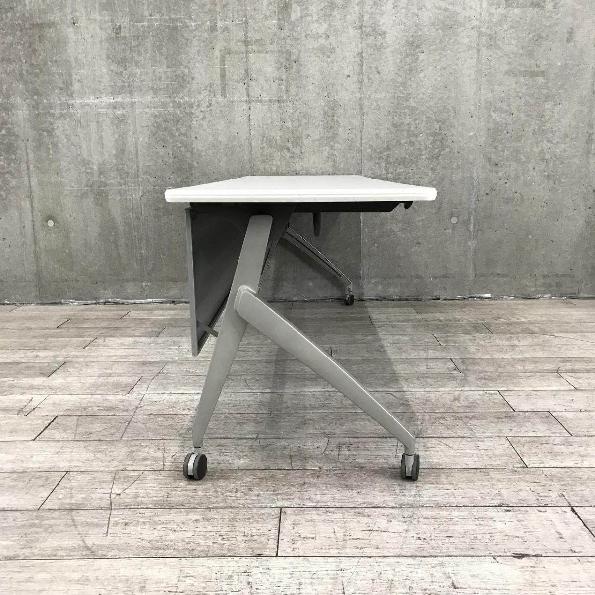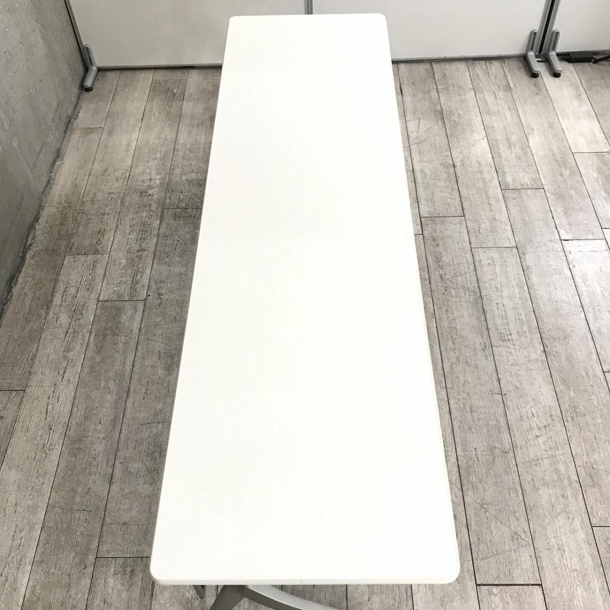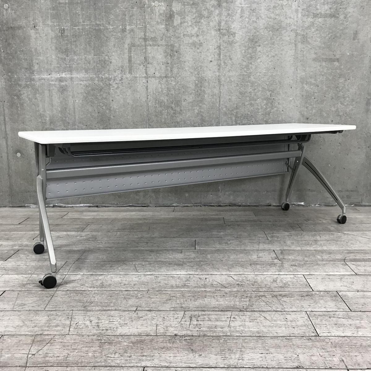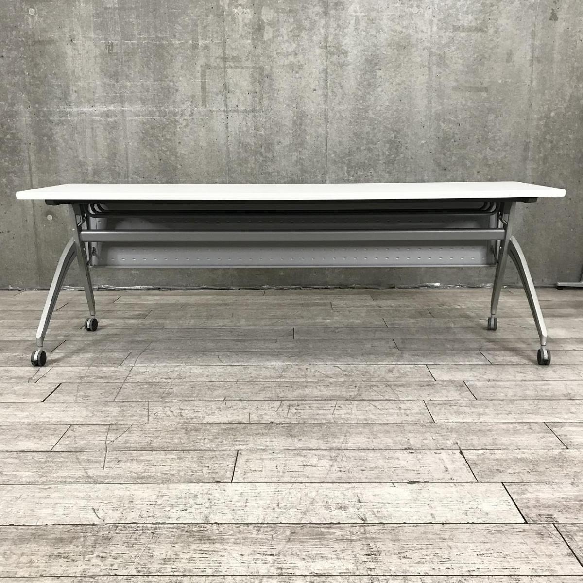 【天板跳ね上げ式でコンパクトに!キャスター付きで移動も楽々!】■ウチダ(UCHIDA)製 SHシリーズ サイドスタックテーブル 会議用テーブル ■W2100×D600㎜ ■天板:ホワイト ■幕板付き/キャスター付- 千葉店