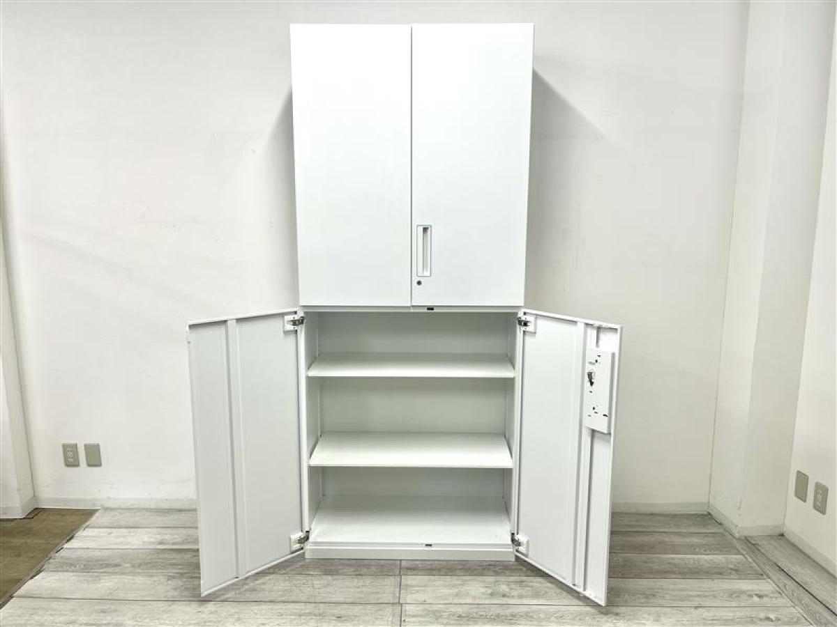 【特殊サイズ!!】【スッキリとしたフラットなデザイン!】【観音開きですべての書類を見渡せ、必要な書類がラクに取り出せる!人気の書庫セット!】■コクヨ(KOKUYO)製 エディア(EDIA)シリーズ 上下両開き書庫セット ハイキャビネット ■ホワイト ■シリンダー錠 ■高さ2050㎜