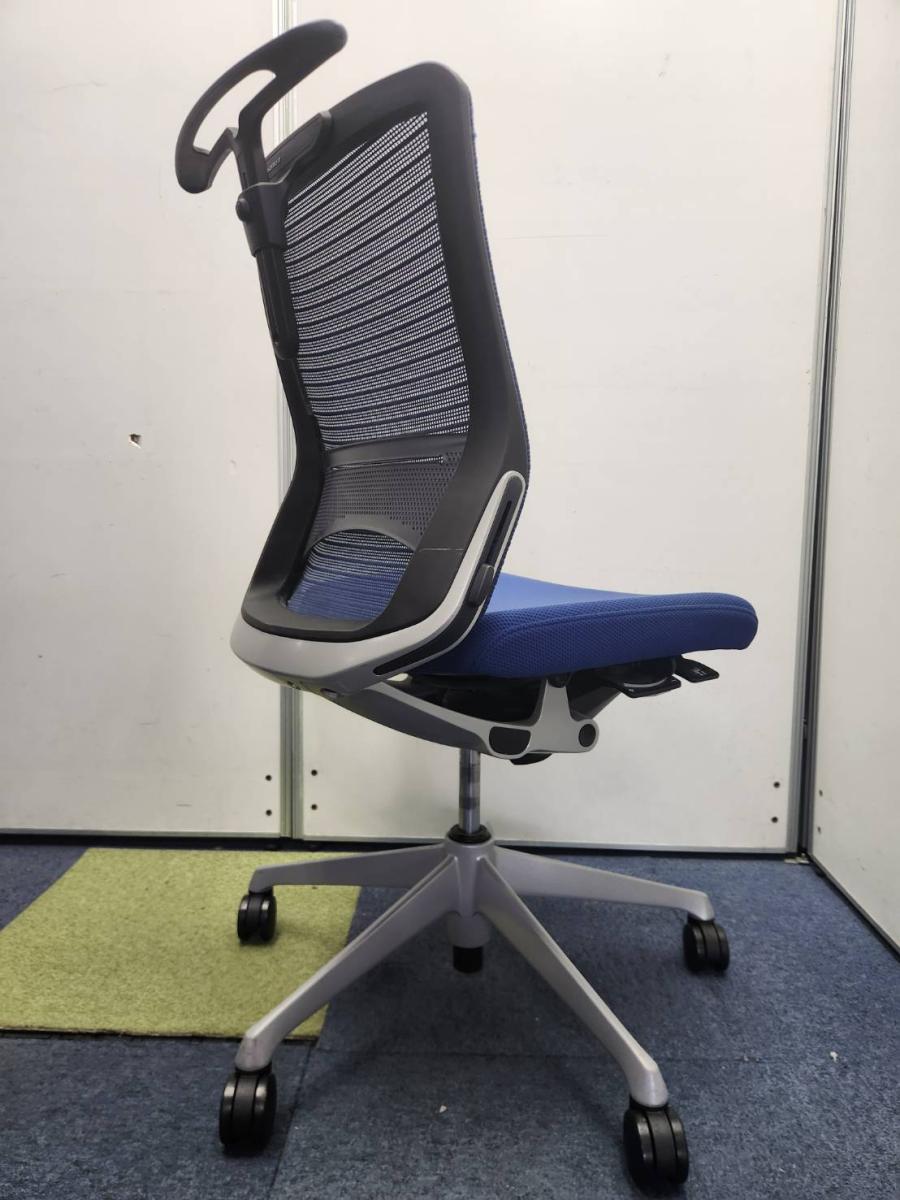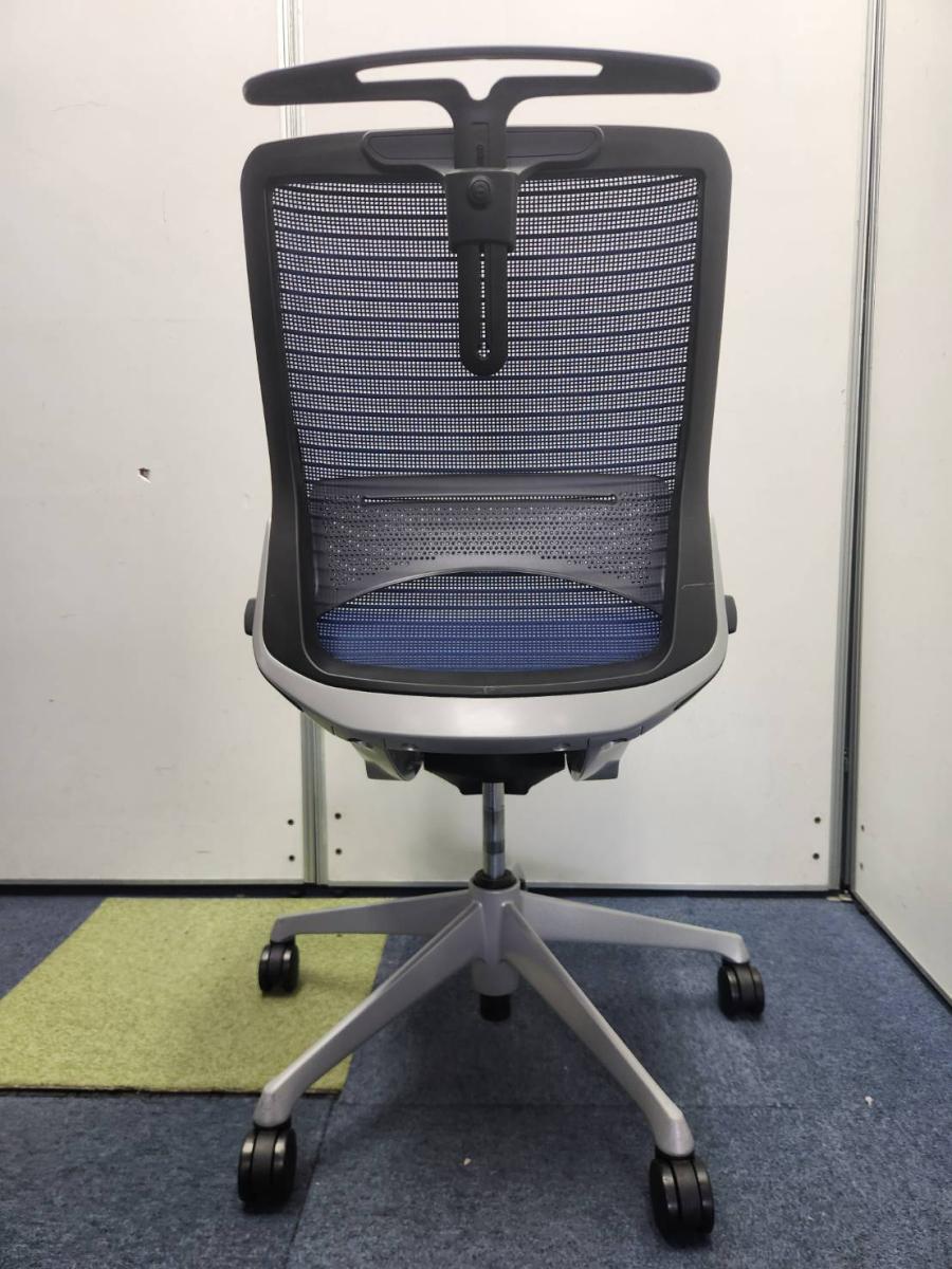 【どんな空間にも調和するデザインと最上級の操作性】■オカムラ(okamura) コーラルチェア(Choral) 肘無し ミドルバック ■背面メッシュ・座面クッション ■ブルー ■ランバーサポート付き ■コートハンガー付き- 名古屋本店