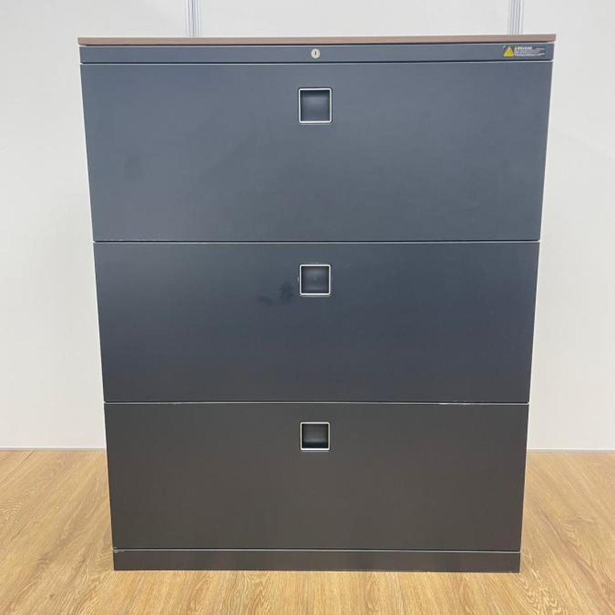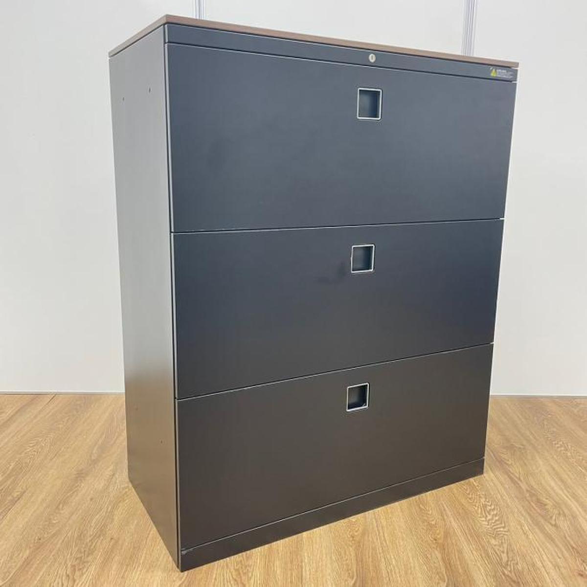 【超レアなブラック色!】オカムラ製/レクトラインシリーズ珍しいブラックカラー/ブラウン天板付き/3段ラテラル【BKNA】- 高崎サテライト