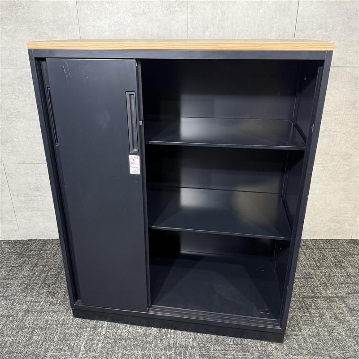【オシャレな天板にブラックカラーが映える1台!】◆コクヨ EDIA エディア ブラック スライド 引き戸 収納 書類 家具 リユース 中古 什器 格安 九州最大級《オフィスバスターズ福岡博多店は、福岡を拠点として、日本全国へ中古オフィス用品・オフィス家具を提供しております》サーキュラーバリューCO2削減量の算出について