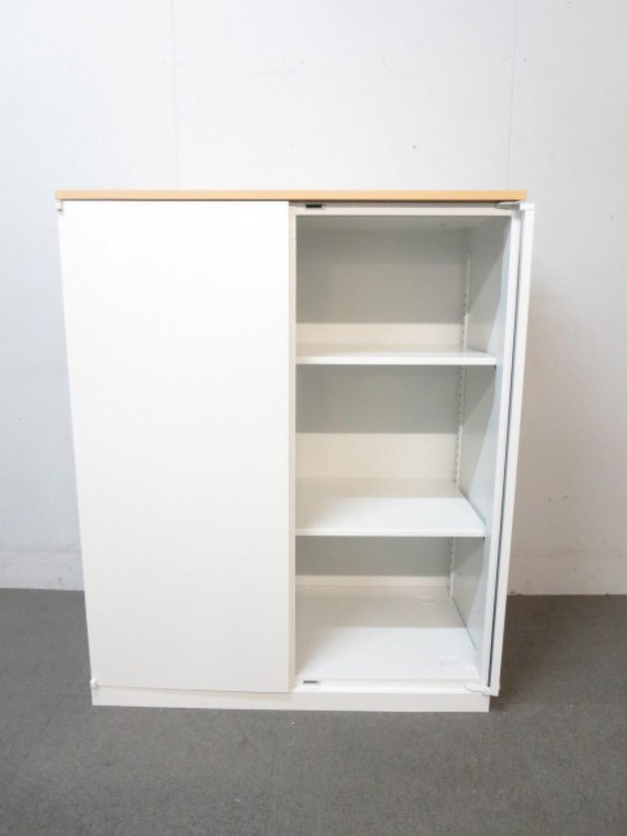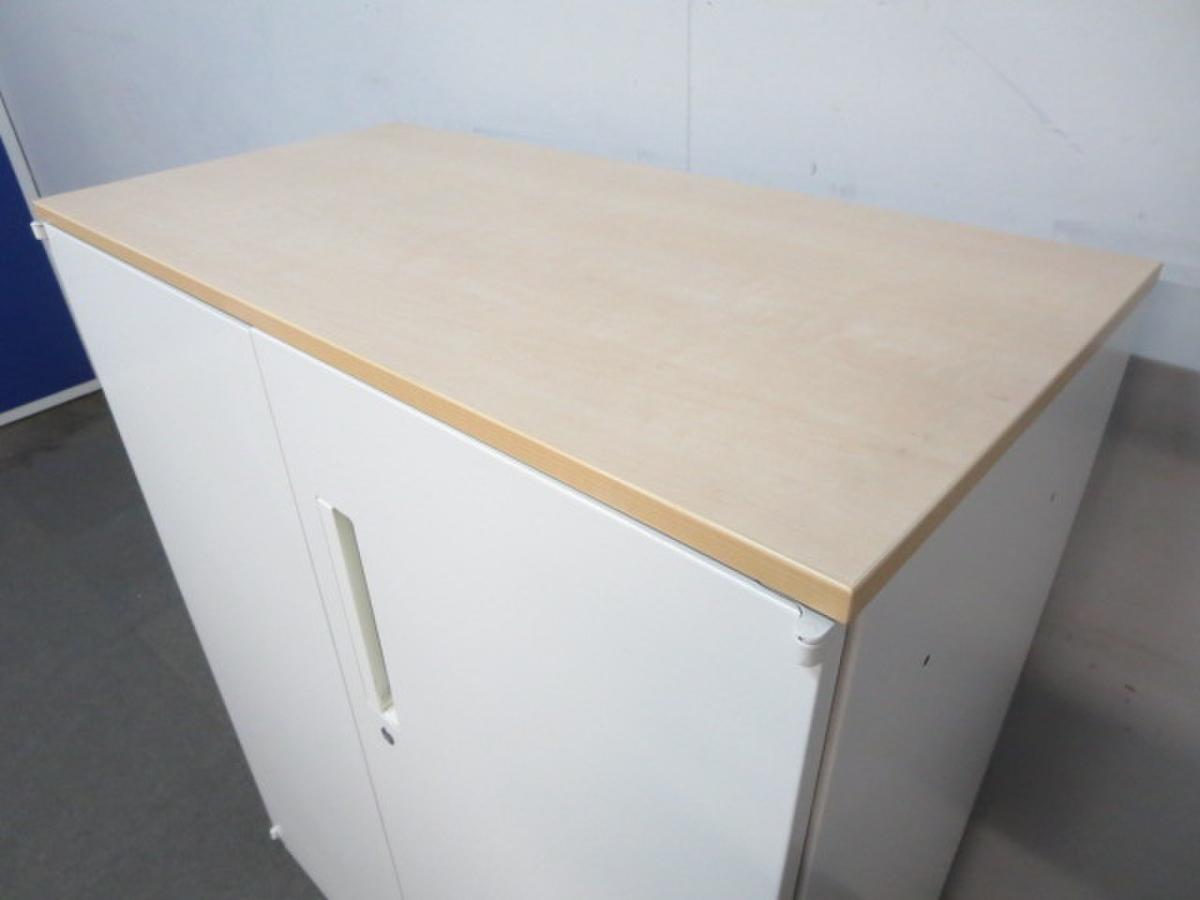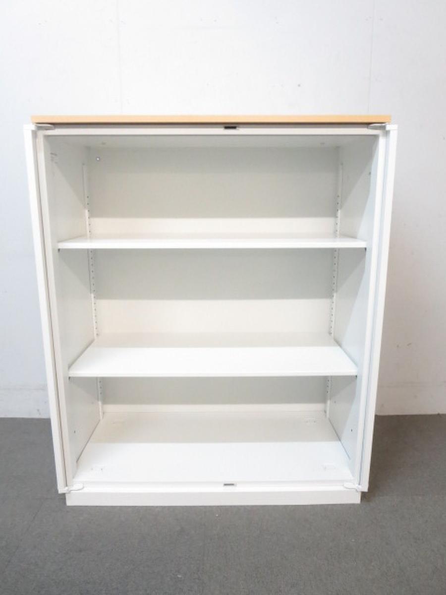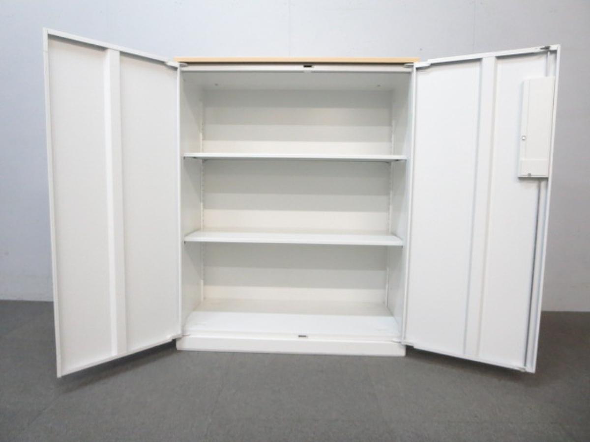 【在庫入替セール品!】人気の観音開きタイプ!取っ手が大きく使い勝手のよい定番キャビネット! ■内田洋行/HSシリーズ/ホワイト 天板ナチュラル