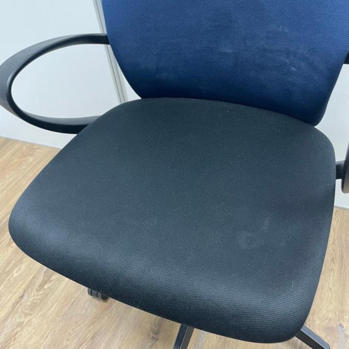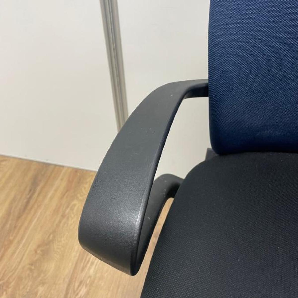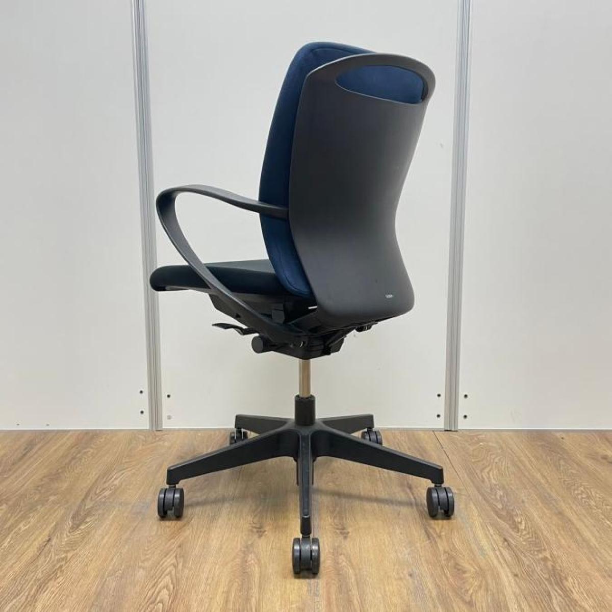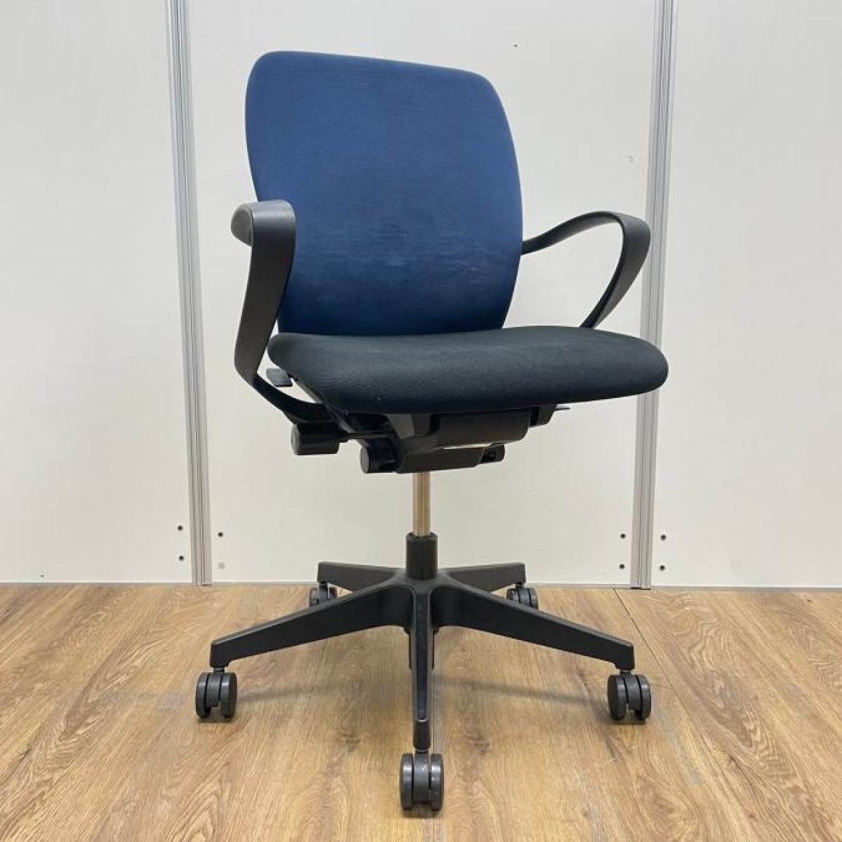 【定価約8万円】【座る人を選ばない、シンプルスタイルな定番シリーズ!把手付きで汚れ対策&持ち運びラクラク!】 ■イトーキ(ITOKI)製 フルゴチェア 肘付ローバック ■固定肘 ■背面:ネイビーブルー/座面:ブラック