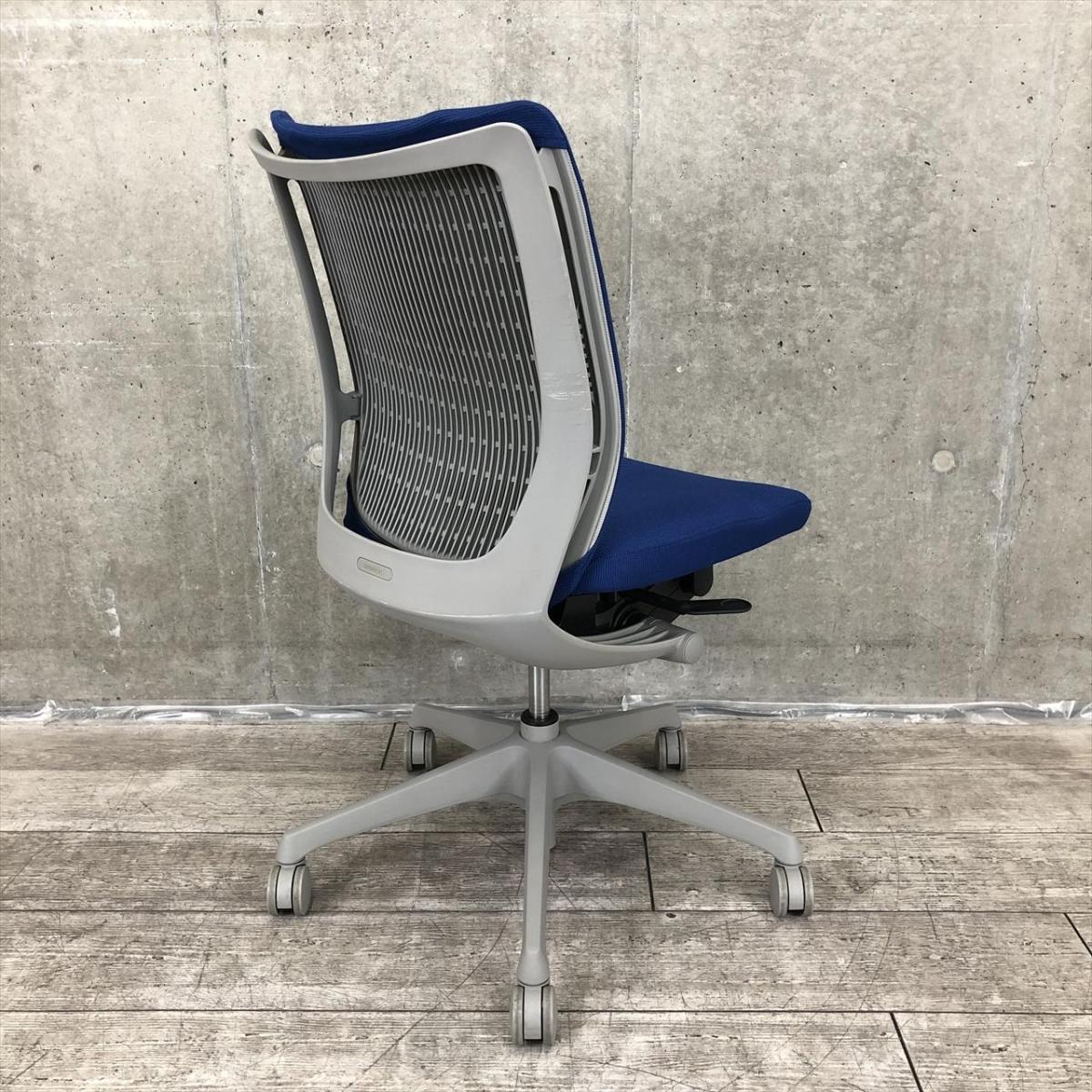 【T11】【T9】【座面スポンジ劣化】オカムラ製 ヴィスコンテシリーズ ミディアムブルー クッションタイプ 高いデザイン性と快適なクッション性が人気のOAチェア! 肘無しハイバックチェア!!
