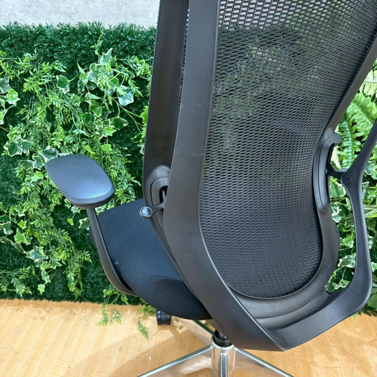 【限定1脚】【三次元曲面が身体にフィット!前傾チルト機能付き大人気メッシュチェア!】■オカムラ(okamura)製 シルフィーチェア(Sylphy) 肘付きハイバック ■背面メッシュ ■可動肘 ■ブラック×ブラックシェル ■ランバーサポート付き