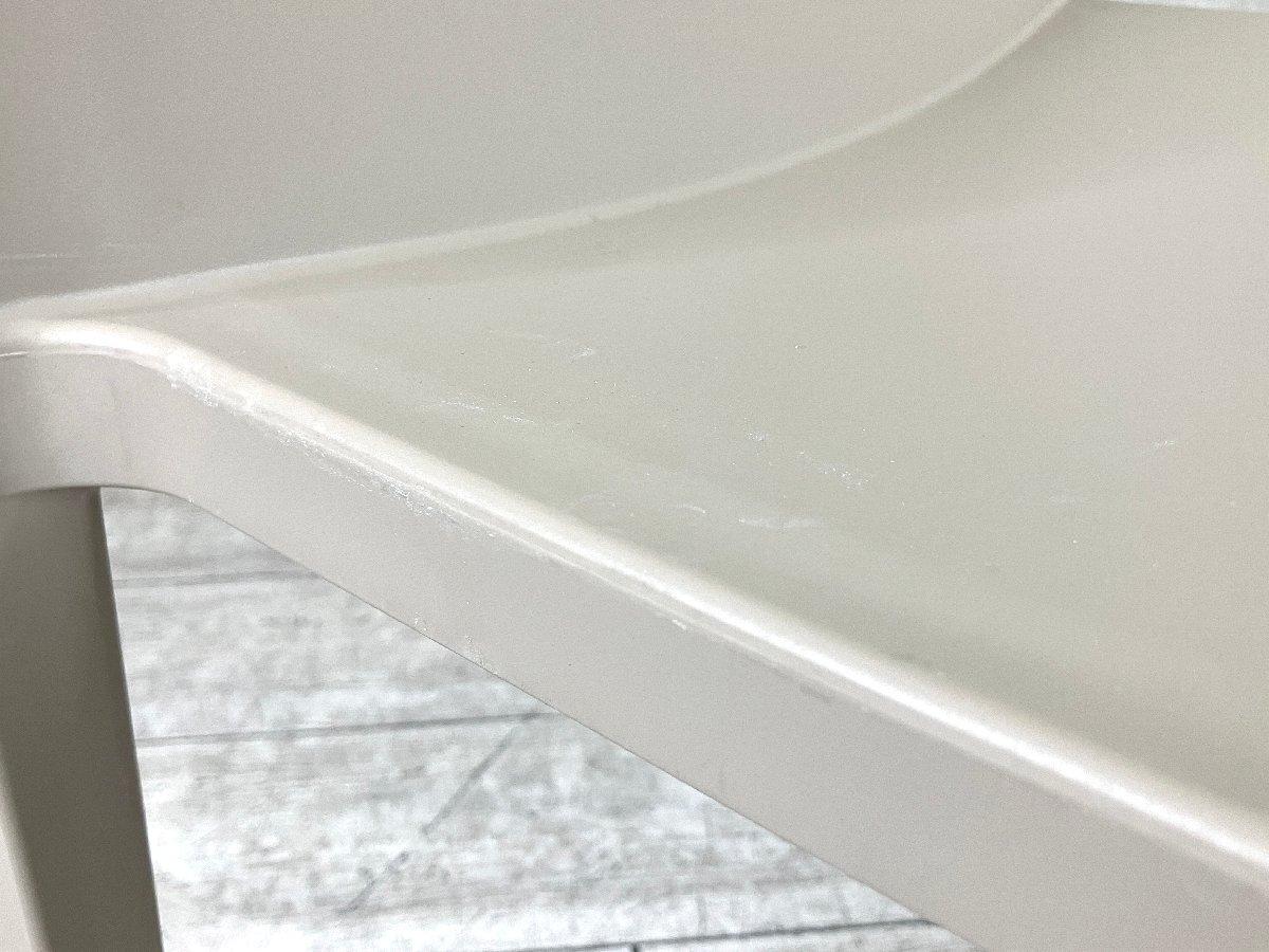 - かなり強い濃い黄ばみ・変色が商品全体にある。(例、座面・背もたれ、脚部等にある。)