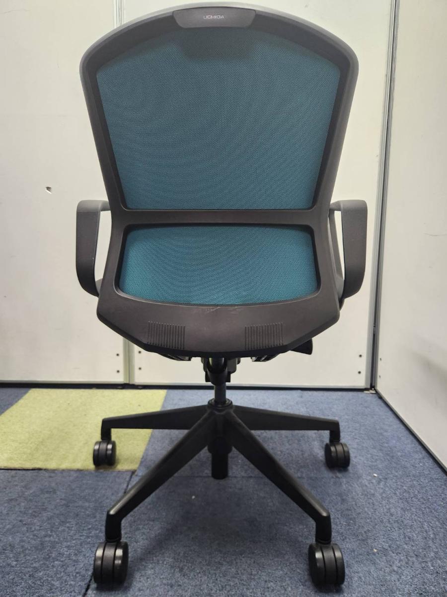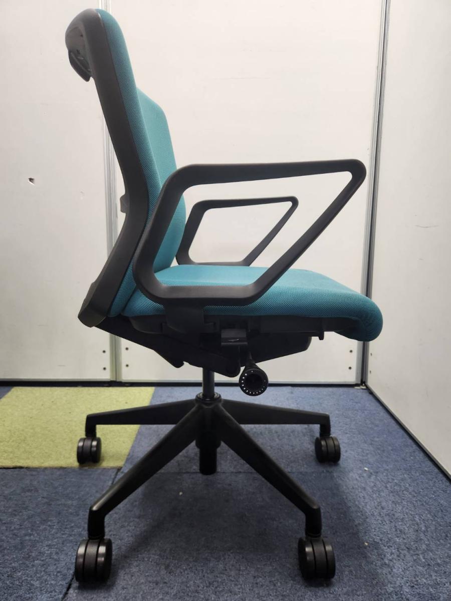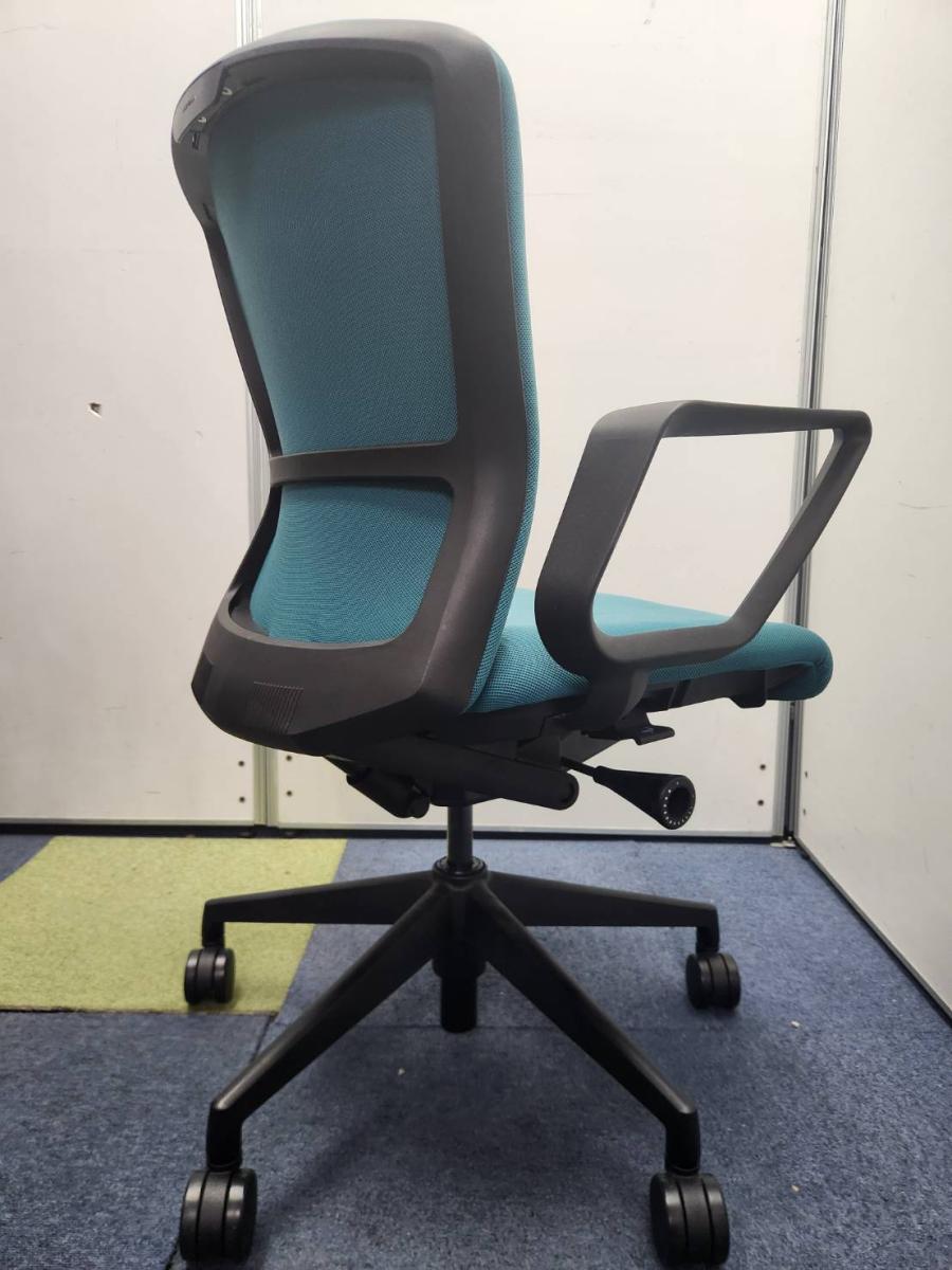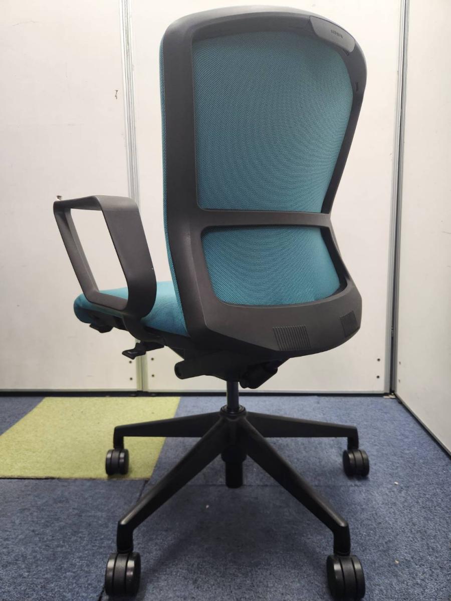 【西】【洗練されたデザインで大人気!ワンランク上の座り心地!】■ウチダ (UCHIDA)製 エルフィ (ELFIE) 肘無ミドルバック ■背面メッシュ ■アクアブルー×ブラックフレーム ■ハンガー付 【チェア】【椅子】【イス】【事務椅子】【デスク】【机】 【書庫】【書棚】【棚】【ラック】【収納】【格安】【安い】【メーカー】【レイアウト変更】【模様替え】【福岡オフィス家具】【福岡中古家具】【中古事務什器】【中古チェア】【中古椅子】