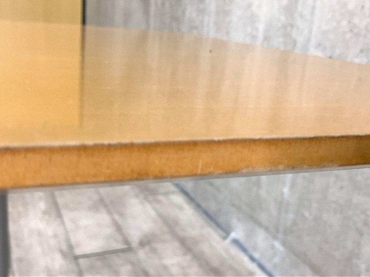 - かなり強い濃い黄ばみ・変色が商品全体にある。(例、天板、幕板、棚板、サイド部分、脚部等にある。)