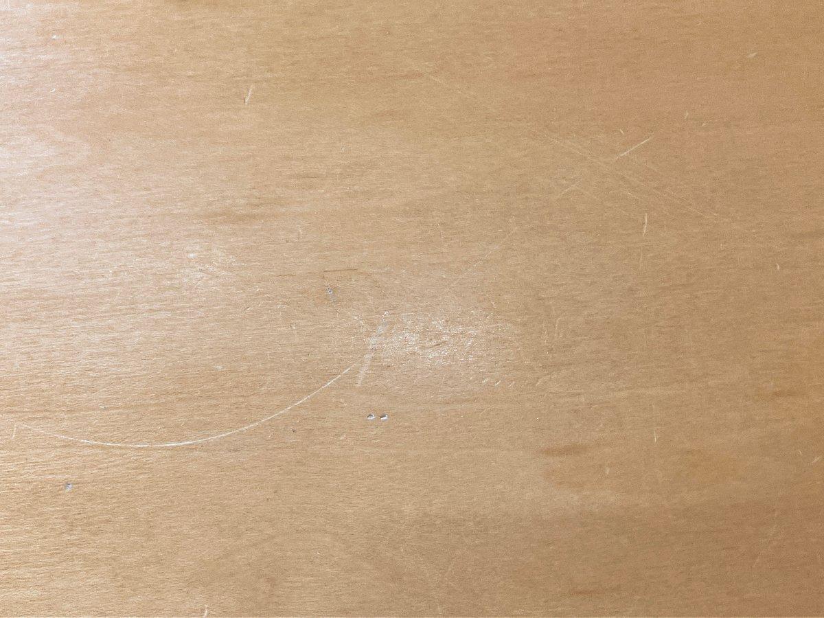 - 目立つ箇所あり傷・凹みが多数、深い傷・凹みが一部ある。(例、天板、幕板、棚板、サイド部分、脚部等にある。)