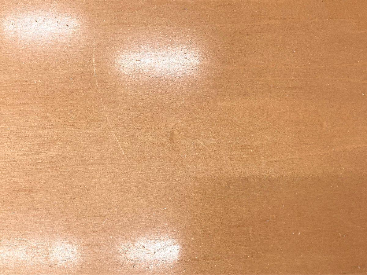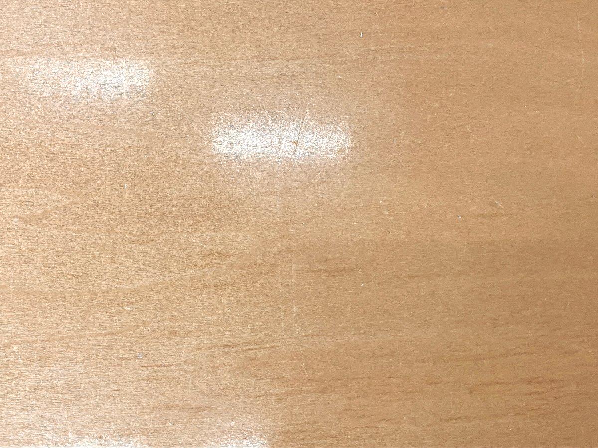- あり黄ばみ・変色が広い範囲にうっすらある、または濃い黄ばみ・変色が一部ある。(例、天板、幕板、棚板、サイド部分、脚部等にある。)