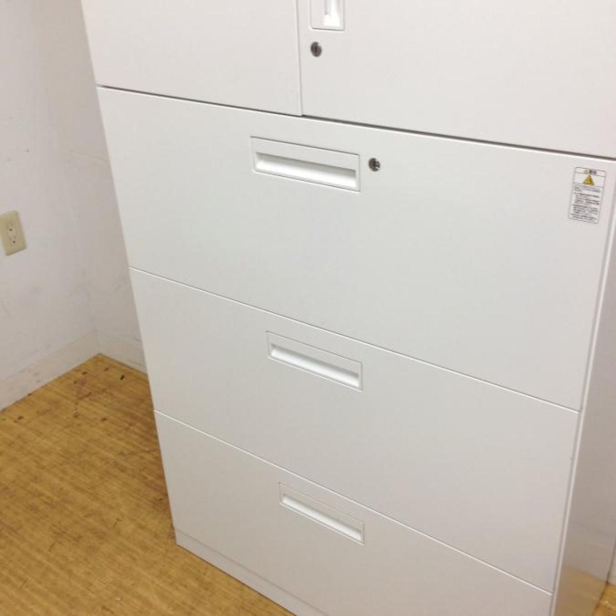 【収納量抜群の書庫セット!観音開き+引き出しタイプの人気の組み合わせ!】■コクヨ(KOKUYO)製 エディアシリーズ(EDIA) 両開き+3段ラテラル 書庫セット ハイキャビネット ■シリンダー錠 ■ホワイト