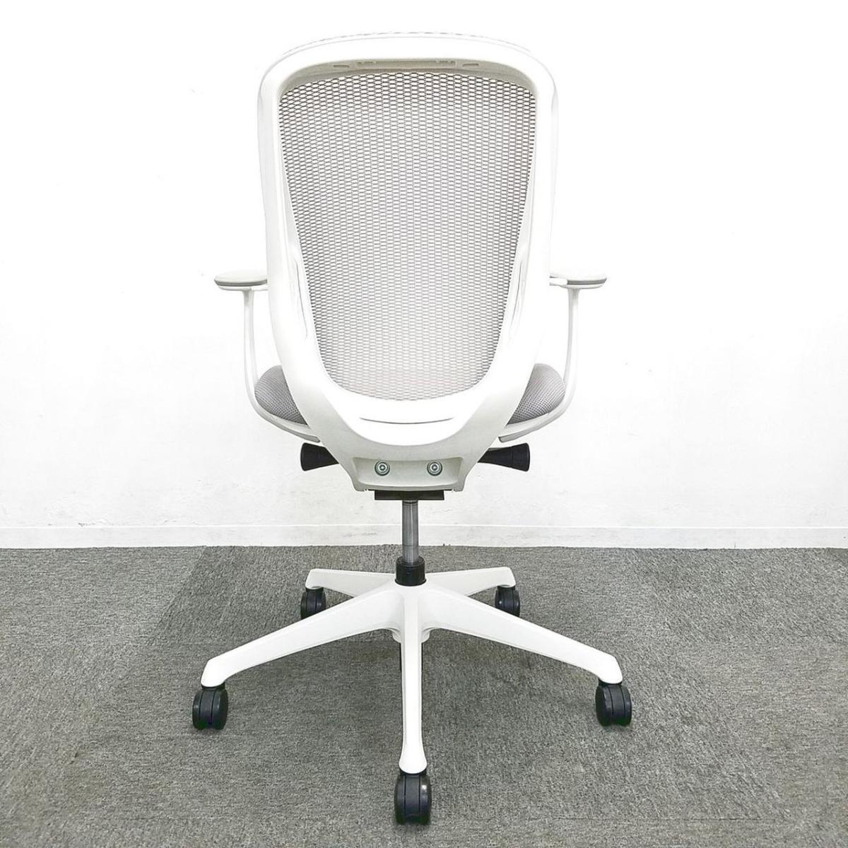 【1脚限定の為、クレジット決済優先!】オカムラ製 シルフィーシリーズ ライトグレー ホワイトフレーム デザインアーム※固定肘 コートハンガー 樹脂脚 メッシュ仕様 大人気前傾チェア 背のカーブを変えられる新感覚のオフィスシーティング 肘付きローバックチェア!!