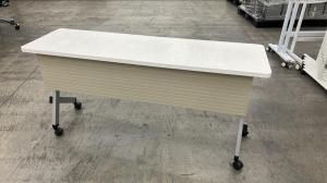 使い勝手抜群!天板を跳ね上げて収納ができるスタックテーブルが入荷!幕板付きで安心! ◆内田洋行/プラッテ(Platte)/ホワイト 横幅1500mm(奥行450mm)フラップテーブル