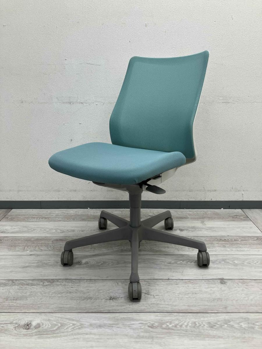 【腰まわりをしっかりホールド!長時間作業も快適フィット!】■オカムラ(okamura)製 フルーエントチェア(Fluent) ローバック 肘無し ■背面メッシュ ■セージブルー×ホワイトシェル- 茨城南店