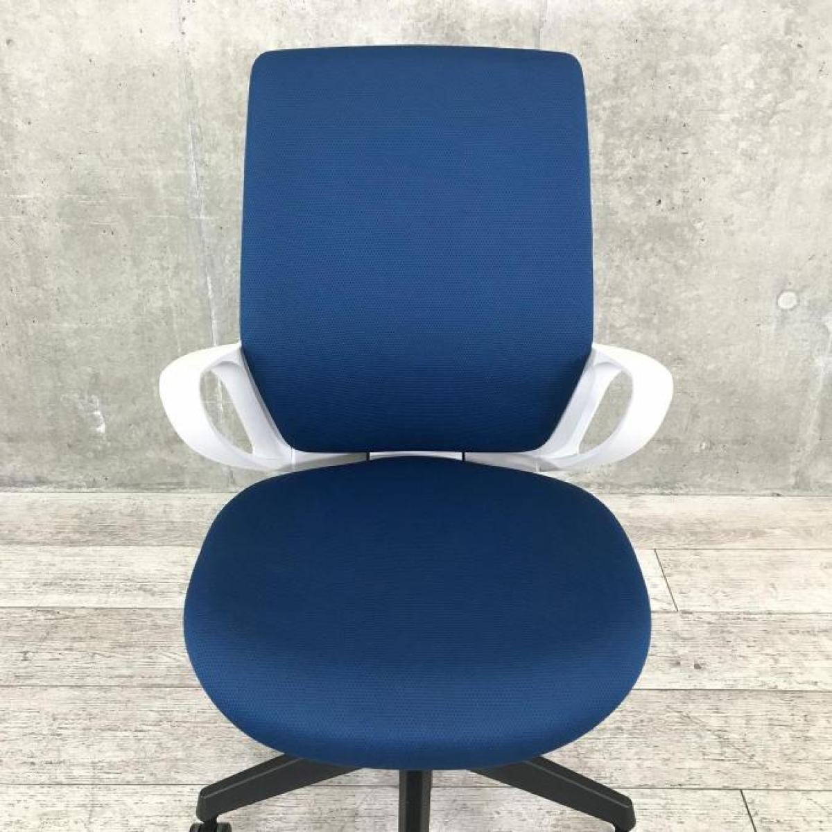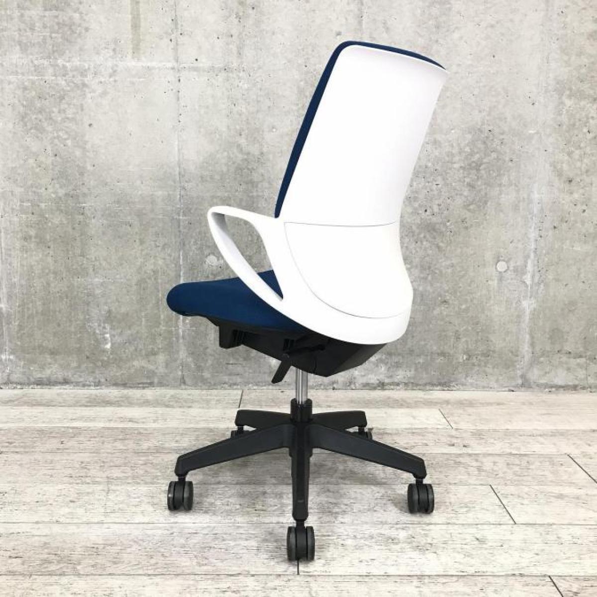 【デスクにスッキリ収納できるコンパクト設計!スマートデザインで使い勝手抜群!】■コクヨ(KOKUYO)製 ピコラ(picora)チェア 肘付き ローバック ■サークル肘 ■プルシアンブルー×ホワイトシェル×脚ブラック※背面日焼け有【2509】弊社使用欄【A01038442】