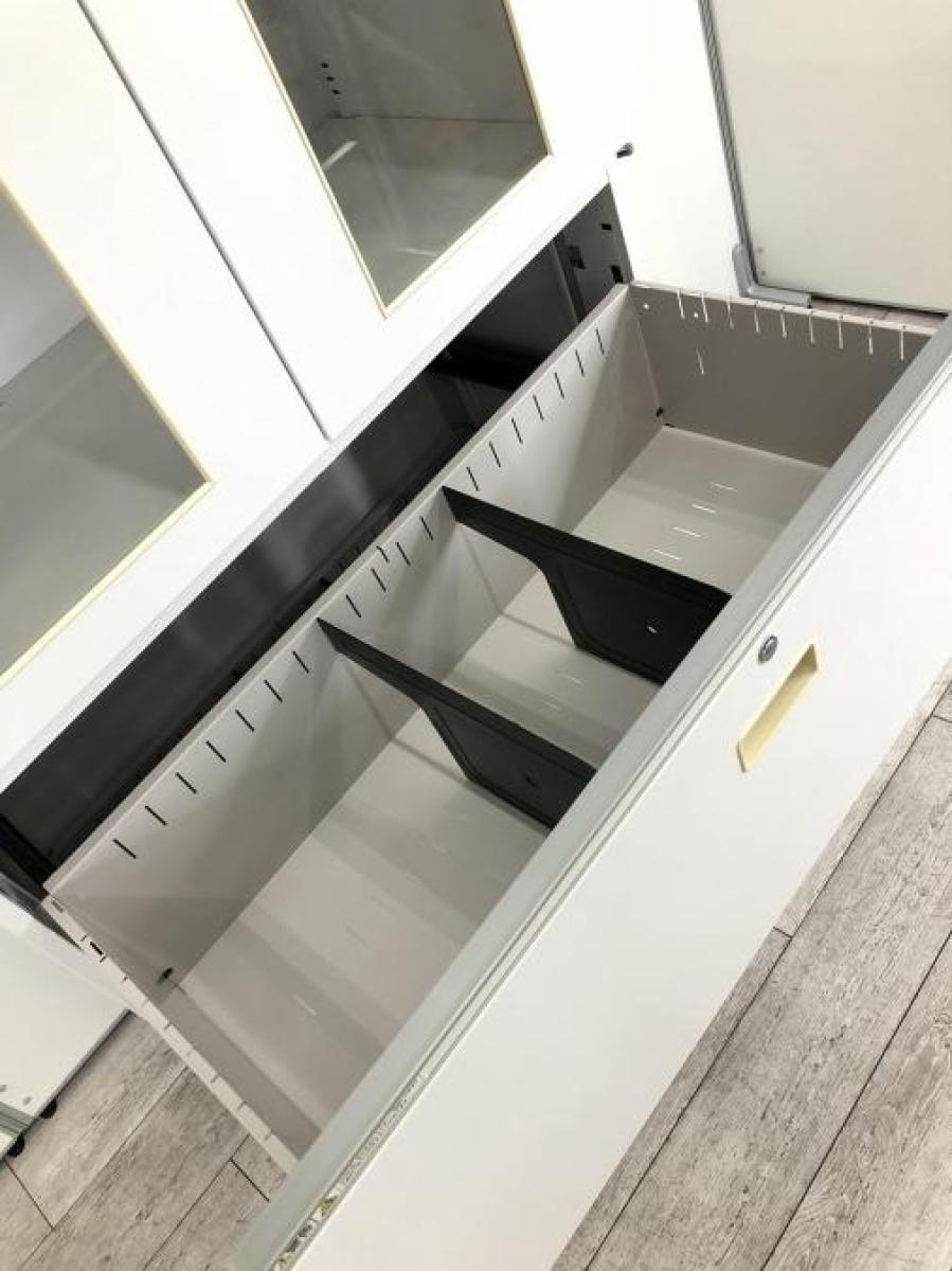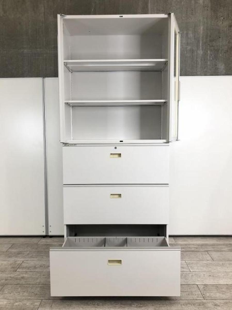 中古品では珍しいガラス両開き書庫と3段ラテラルのセットとなります!