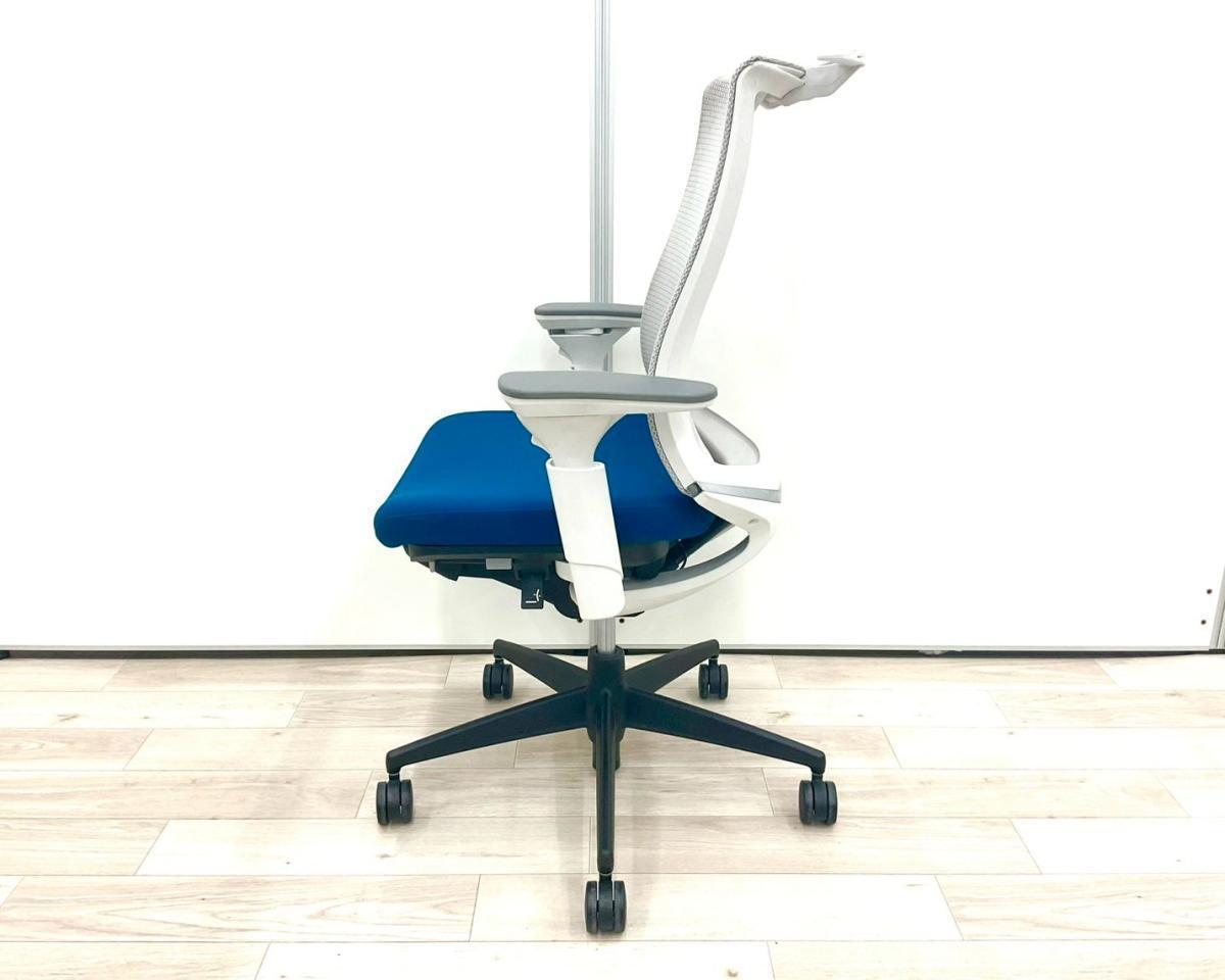 【前傾から後傾まで様々な姿勢をサポート!ワンランク上の座り心地!】■コクヨ(KOKUYO)製 ベゼル(Bezel)チェア 肘付き ハイバック モデレートタイプ 背面メッシュ ■可動肘 ■プルシアンブルー×ホワイトシェル×脚ブラック ■ハンガー付 【弊社使用欄:A01037823 K】【ID】