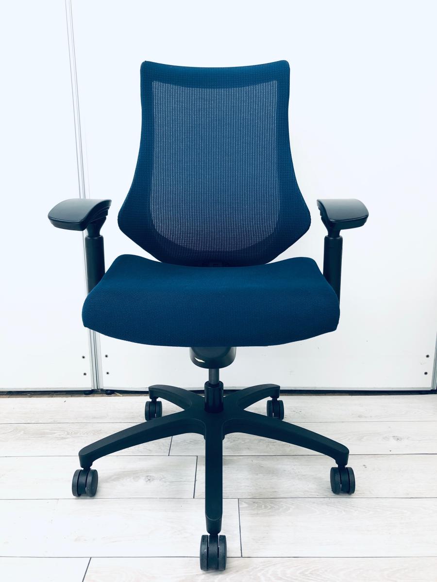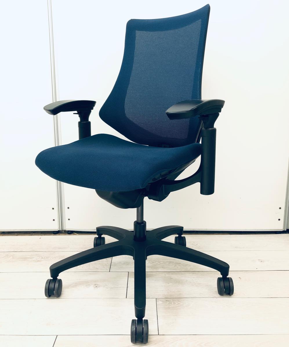 【最先端のデザインに快適な座り心地!】■イトーキ製 エフチェア 可動肘付 ネイビーブルー ■三次元フォルムが腰にフィット!【在庫入替セール品(本在庫限定価格)】