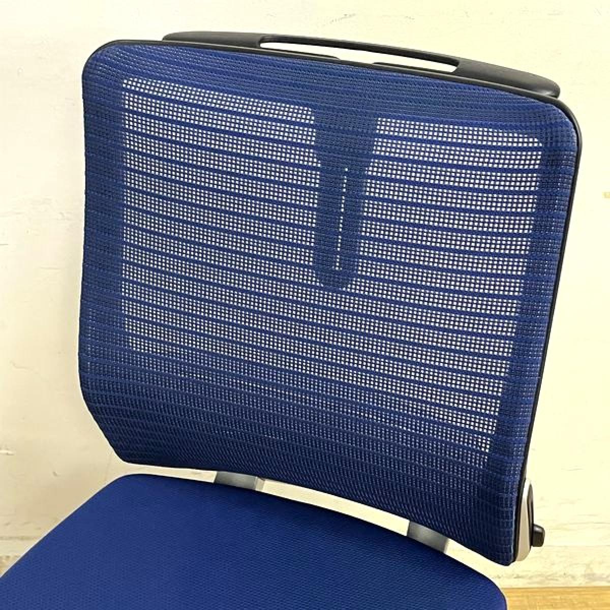 オカムラ コーラル 肘無しミドルバック メッシュタイプ 張地:ミディアムブルー シルバーフレーム ランバーサポート&コートハンガー付き- 名古屋千種店