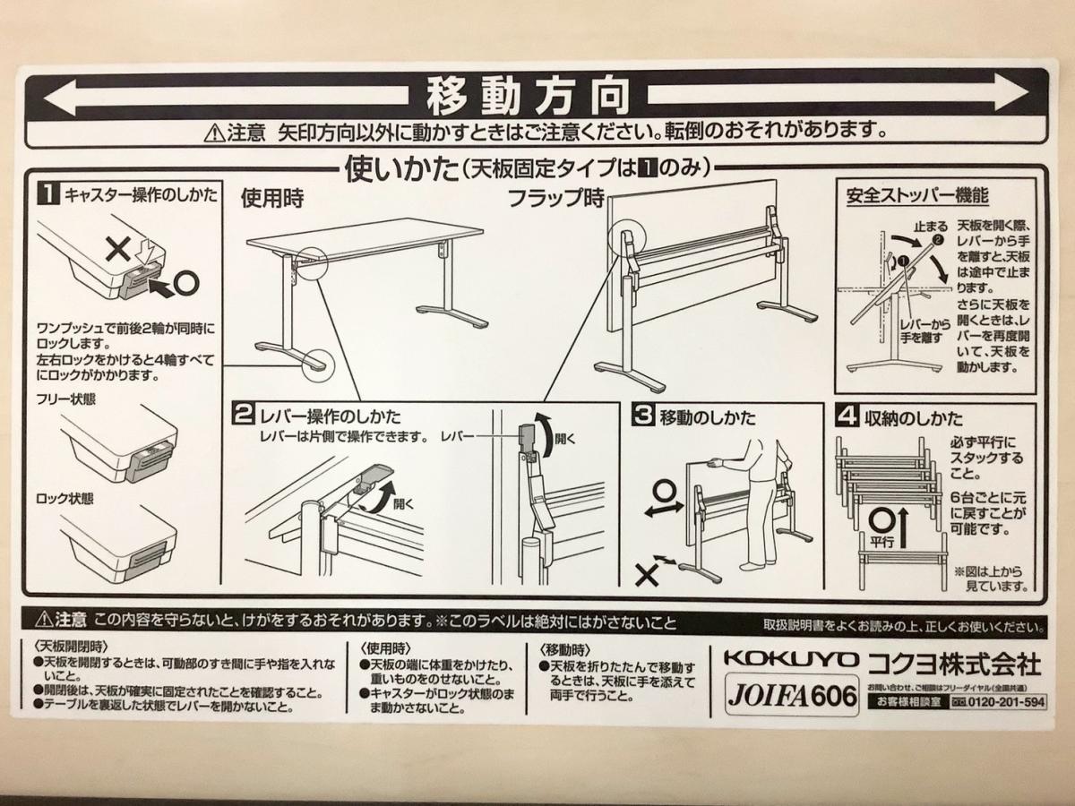 - 一部不具合あり天板歪み、アジャスター無し、キャスター使用不可ようなそのテーブルの本来の効用を果たすための機能以外の一部が使用不可な状態。(例、キャスターロッ ク機能使用不可、棚板無し等がある。)