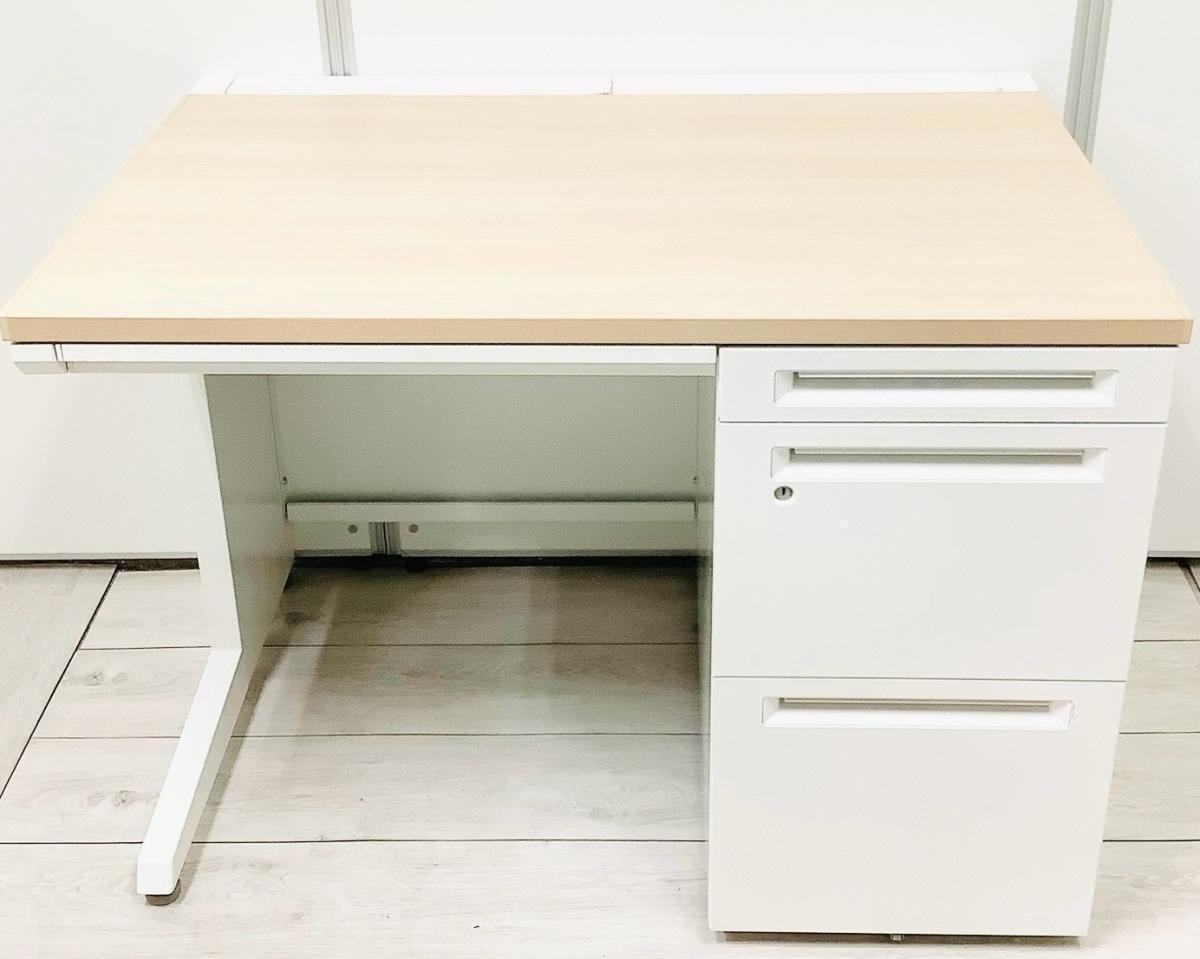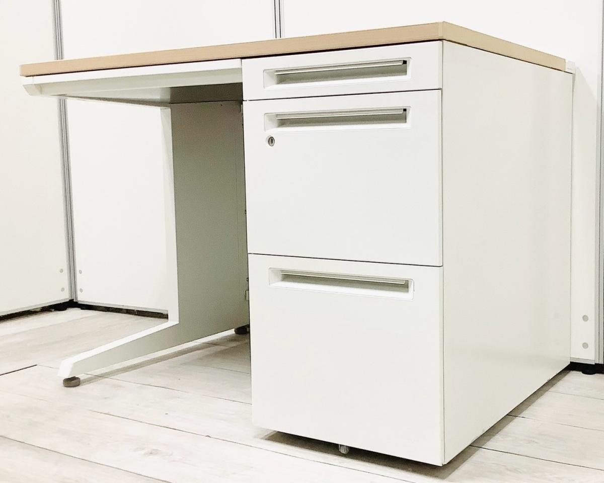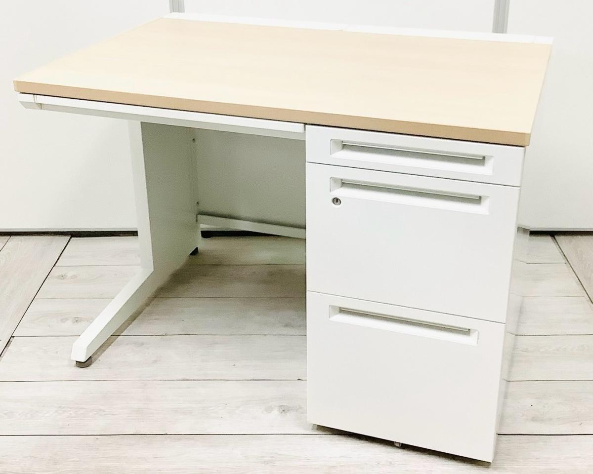 【在庫入れ替え】【人気のコンパクトサイズ!スタイリッシュな木目天板!】 ■オカムラ(okamura)製 アドバンスシリーズ 片袖デスク W1000mm ■木目ナチュラル天板 × ネオホワイトボディー ■シリンダー鍵