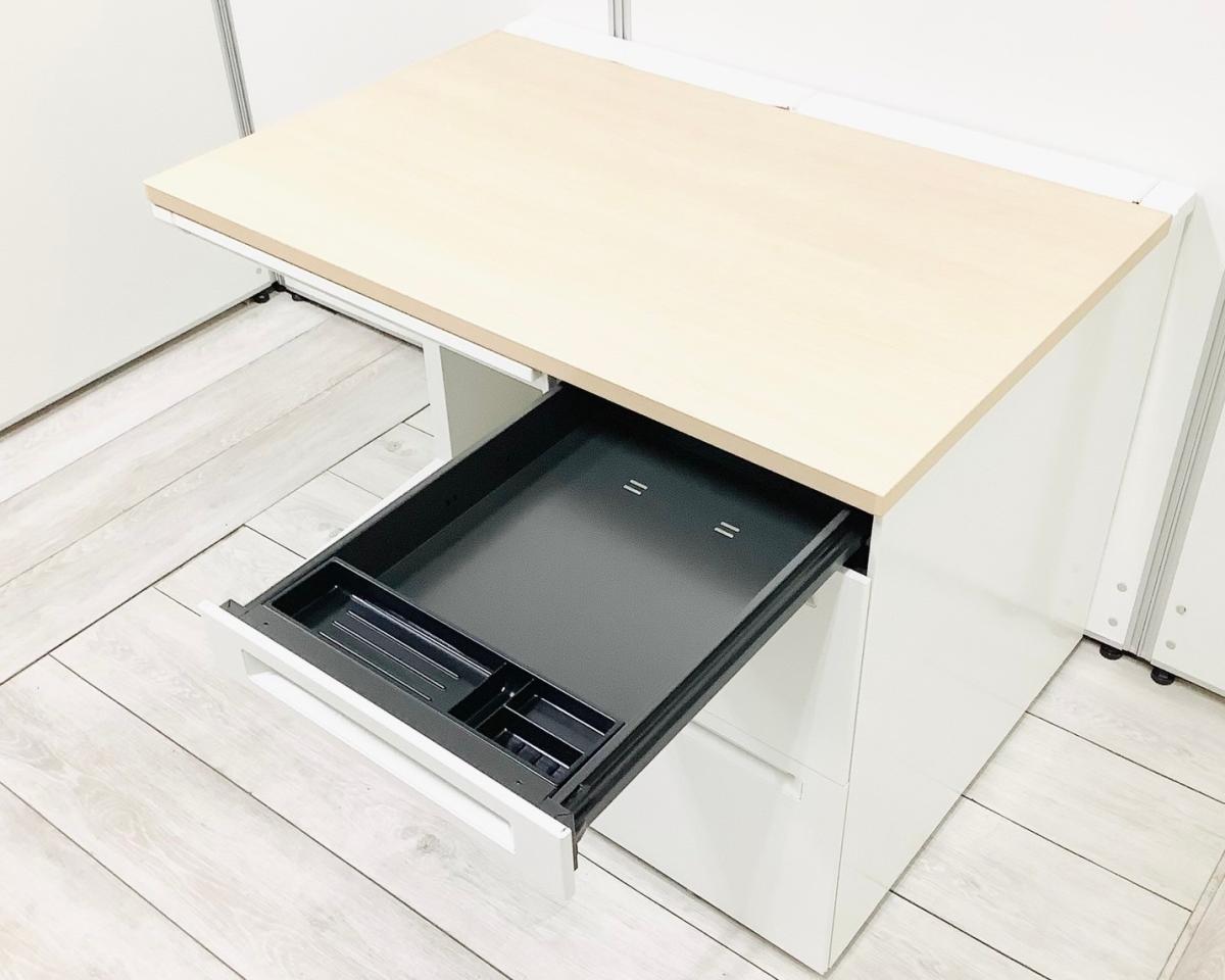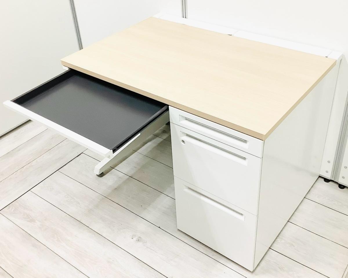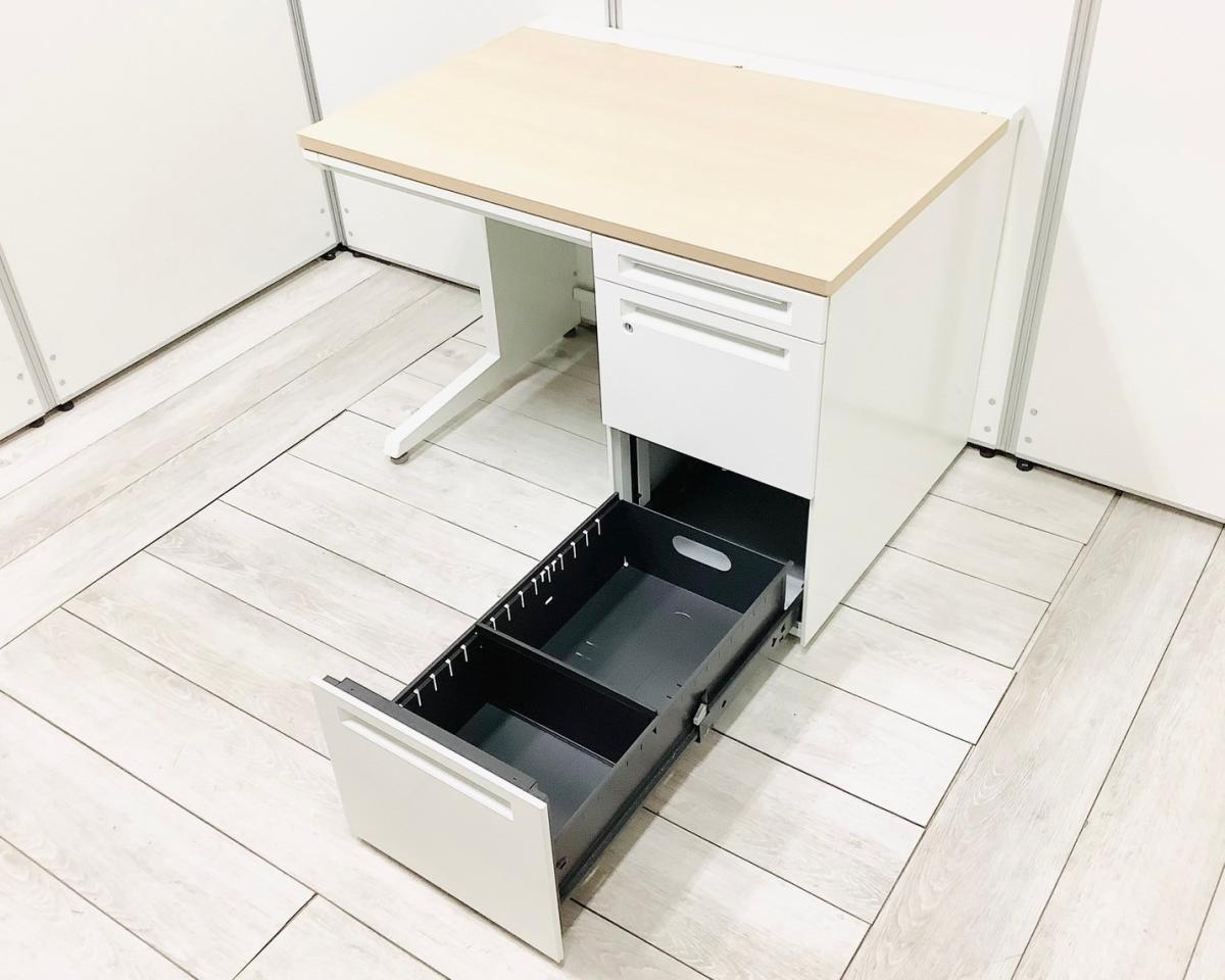 【在庫入れ替え】【人気のコンパクトサイズ!スタイリッシュな木目天板!】 ■オカムラ(okamura)製 アドバンスシリーズ 片袖デスク W1000mm ■木目ナチュラル天板 × ネオホワイトボディー ■シリンダー鍵