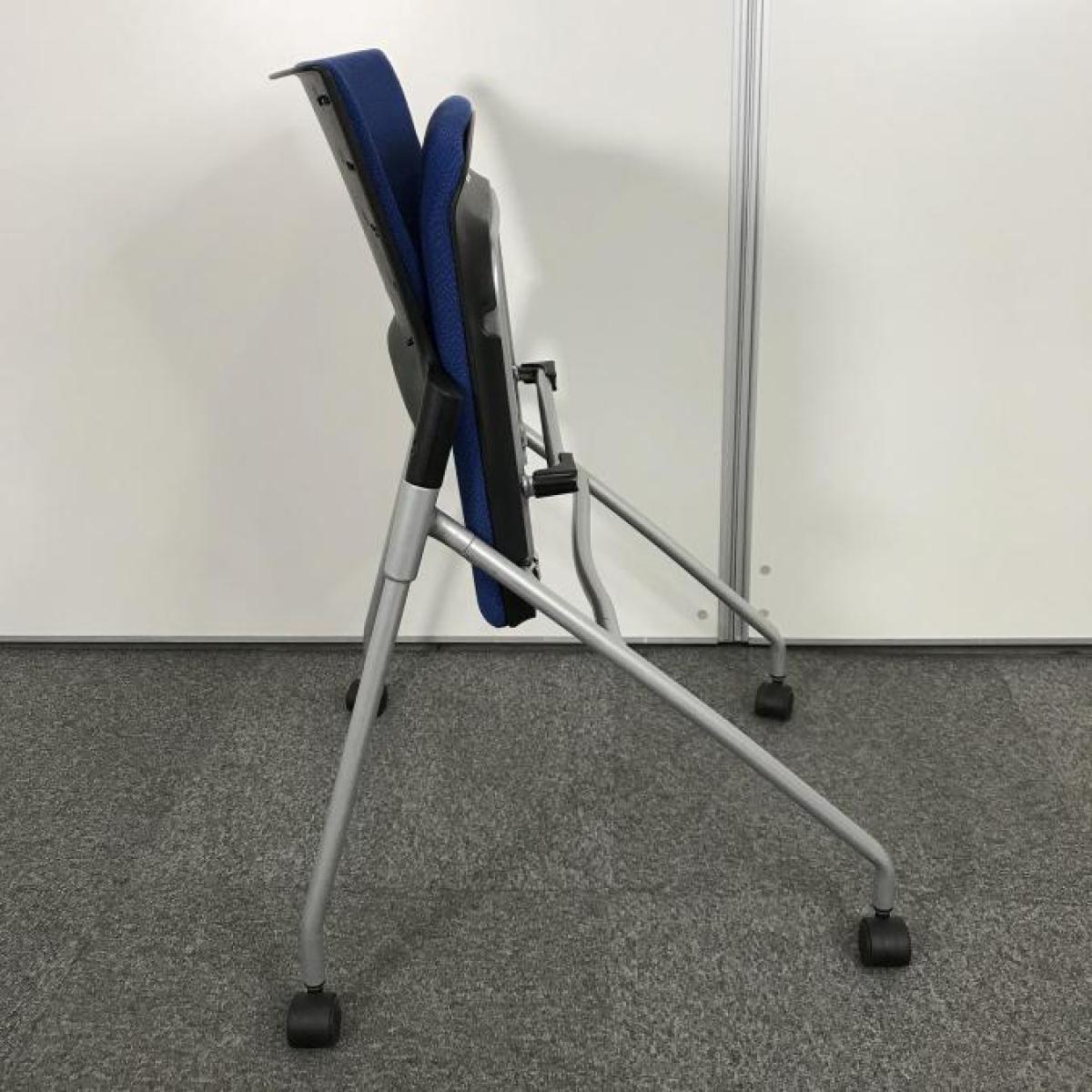 【キャスター付でスイスイ動かせる!省スペースで収納可能!会議や研修にオススメ!】■イトーキ製 マノス(MANOSS) ネスティングチェア 背面パッド無し ■ストロングブルー ■オフィスバスターズ東大阪店 【W】