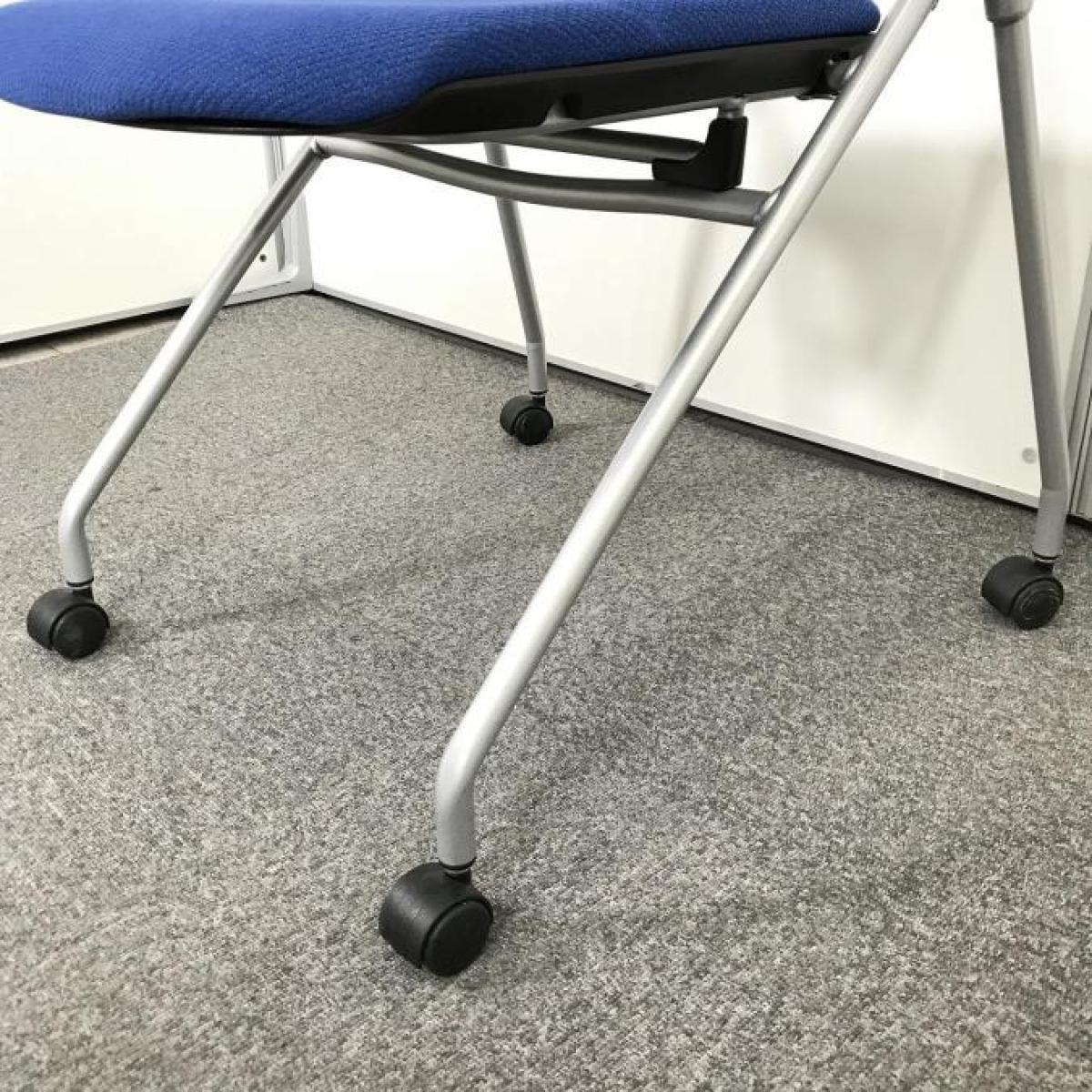 【関東倉庫在庫品】【フレキシブルに使える!平行ネスティングで省スペース化!】■イトーキ(ITOKI)製 マノス(MANOSS) ネスティングチェア ミーティングチェア ■背パッド付 ■キャスター付 ■ブルー【弊社使用欄:A01014525】【ECBMC】在庫がある店舗一覧