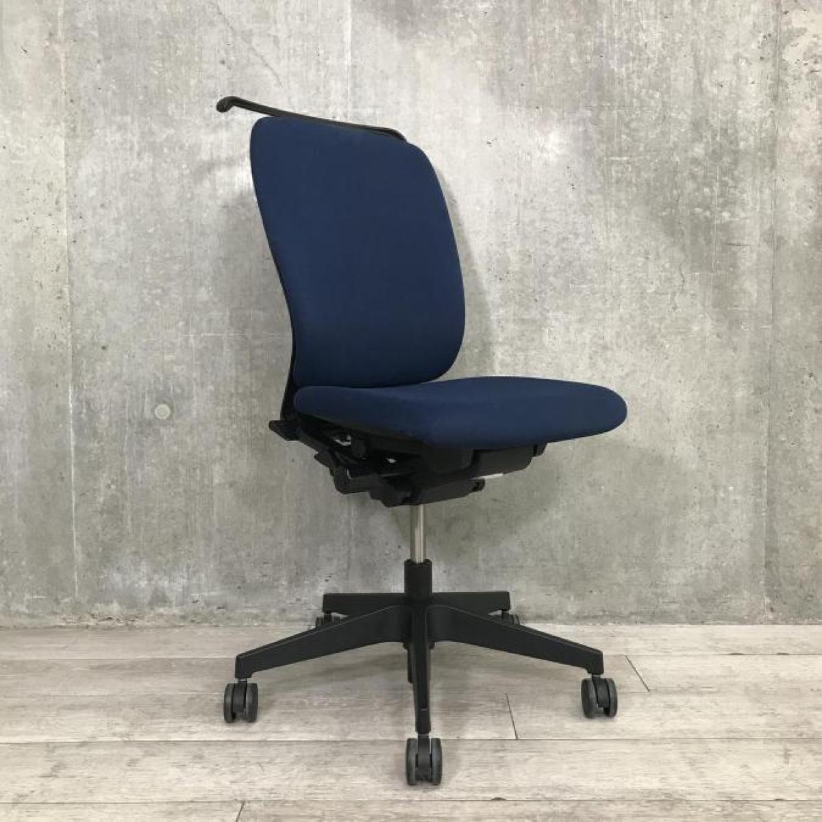 【博】【イトーキ製定番チェア】 コートハンガー付きが嬉しい 取っ手付きで移動も楽々♪ 特徴的なフォルム ネイビー 福岡 中古家具 安い 博多 天神 九州最大級