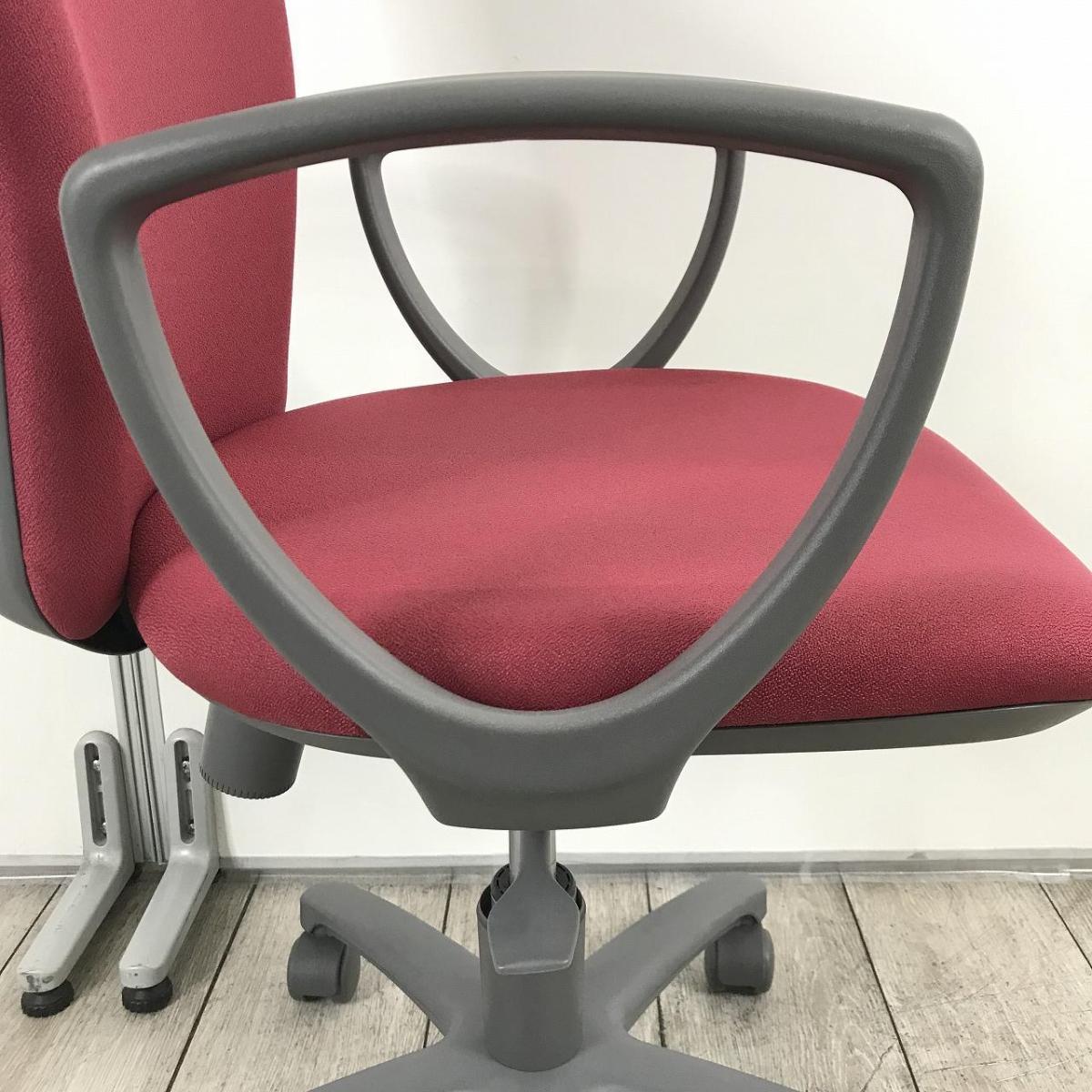 【6脚入荷】【ふっくらクッションが心地良い!コスパ抜群のコンパクトチェア!】■コクヨ(KOKUYO)製 レグノ2チェア 肘付ローバック ■サークル肘 ■マルーン(レッド)×グレーシェル