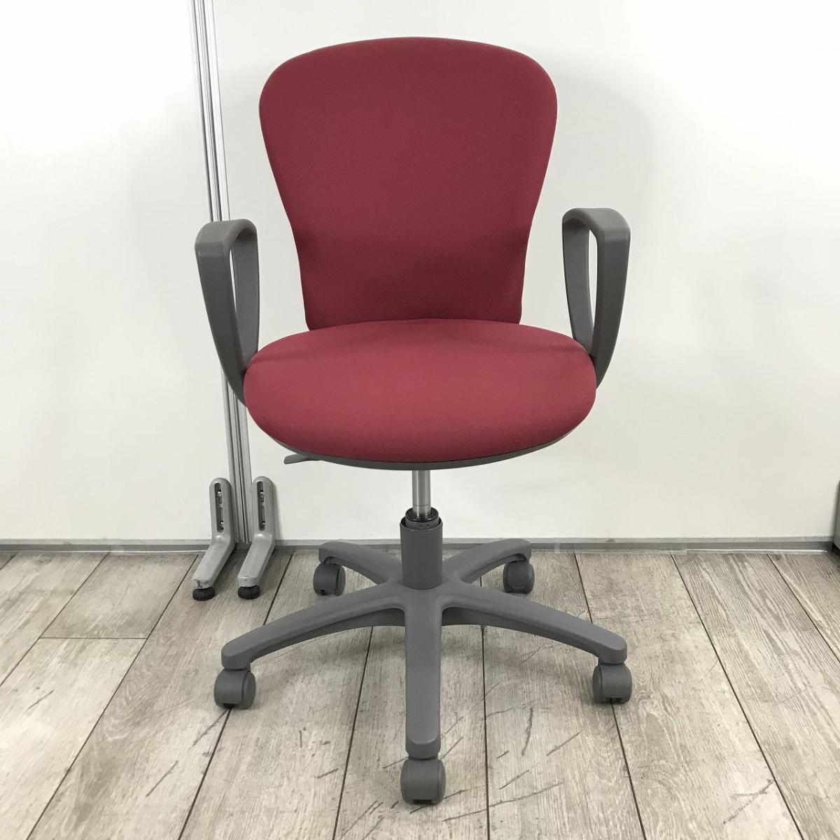 【ふっくらクッションが心地良い!コスパ抜群のコンパクトチェア!】■コクヨ(KOKUYO)製 レグノ2チェア 肘付ローバック ■サークル肘 ■マルーン(レッド)×グレーシェル
