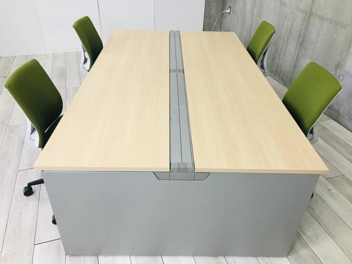 【倉庫在庫品】【幅2000mm】人気あります!4名用フリアドデスク※天板ナチュラル癒し色◆オカムラ製 オフィスバスターズ 梅田本店