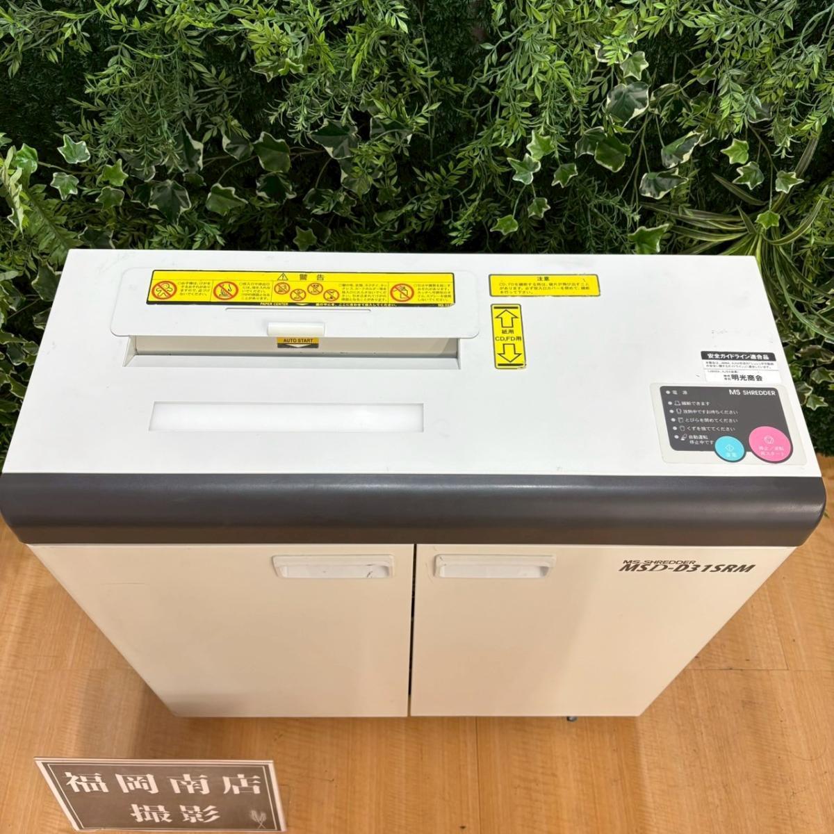 ★現物写真だから安心★2019年製/状態不良なし★ 明光商会製のシュレッダー【MSDシリーズ/MSD-D31SRM】が入荷しました! *良品を格安で!「オフィスバスターズ福岡南店」は、福岡を拠点として、全国へ中古オフィス用品・オフィス家具を提供しております。- 福岡南店