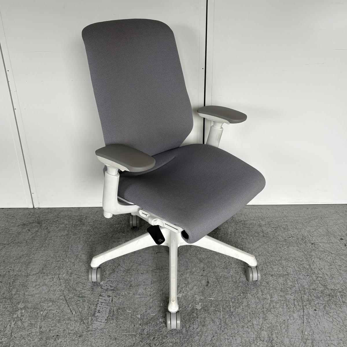 【22年度製】オカムラ製 スフィア グレー ホワイトフレーム 肘付き ハイバック アジャストアーム※可動肘 どんな体格の方でも快適な座り心地をご提供! 肘付きハイバックチェア!!