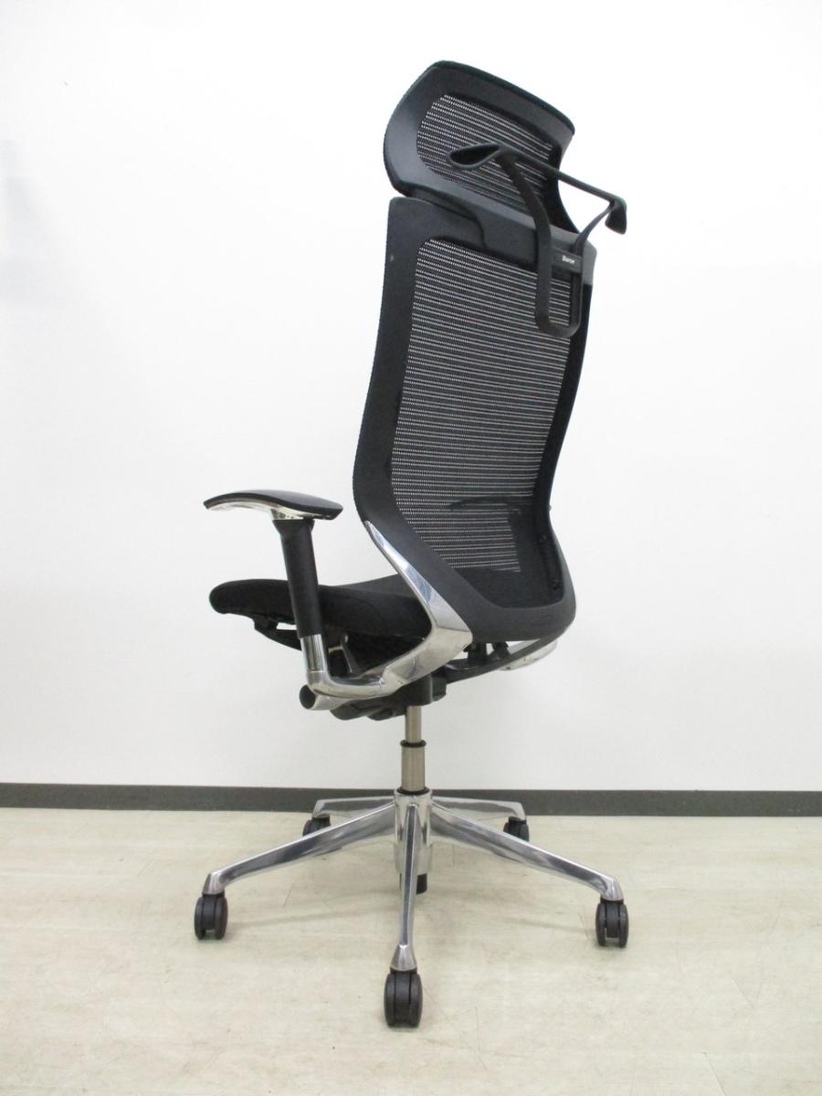 【オフィスの執務室、会議室におすすめ!】■オカムラ(okamura)製 バロン(Baron)チェア 肘付き ハイバック ■背・座面メッシュ ■可動肘 ■ヘッドレスト付き ■ブラック【硬めの座面が大人気!国産メッシュチェアの代表格!】