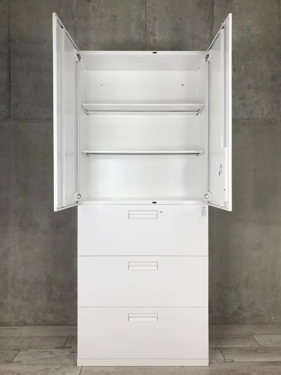 【幅800㎜と希少キャビネットが3セット入荷!!】 コクヨ エディア ホワイト 上置(両開き) 下置(3段ラテラル) 【搬入時は上下別の2個口での納品となるためエレベーター搬入も安心!】- 茨城南店
