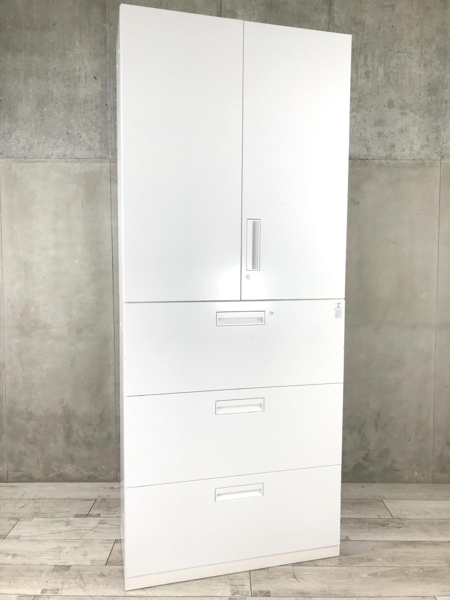 【収納量抜群の書庫セット!観音開き+引き出しタイプの人気の組み合わせ!】■コクヨ(KOKUYO)製 エディアシリーズ(EDIA) 両開き+3段ラテラル 書庫セット ハイキャビネット ■ホワイト ■シリンダー錠