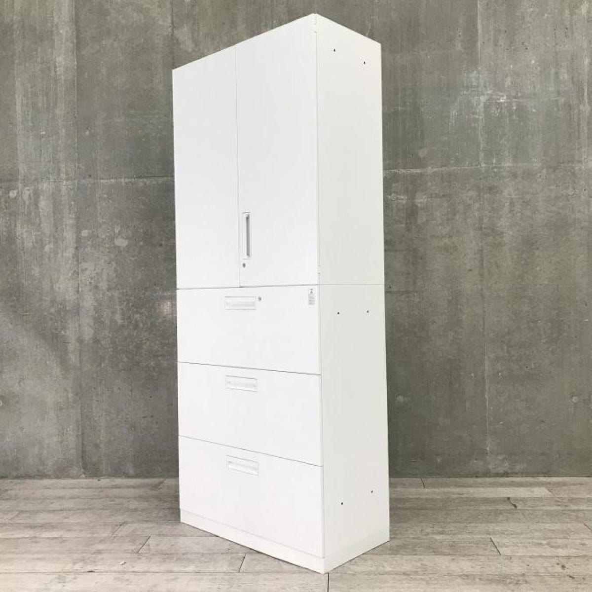 【収納量抜群の書庫セット!観音開き+引き出しタイプの人気の組み合わせ!】■コクヨ(KOKUYO)製 エディアシリーズ(EDIA) 両開き+3段ラテラル 書庫セット ハイキャビネット ■ホワイト ■シリンダー錠- 高崎サテライト