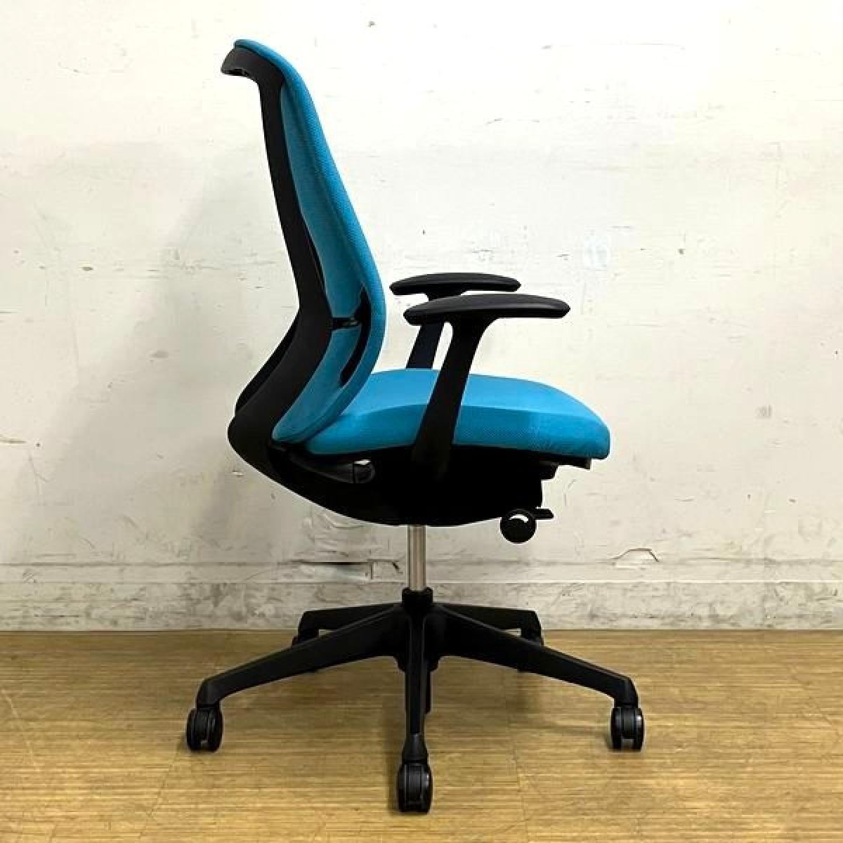 《現物写真だから安心!》オカムラ製の人気オフィスチェア【シルフィーメッシュ/可動肘/ヘッドレスト付き/ブルーグリーン】が先着1名様ご案内可能です!