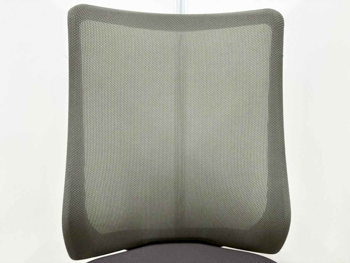 背もたれは、奥行きのある立体的な形状のフレームに、メッシュのテンションを部位ごとに変えて張ることで