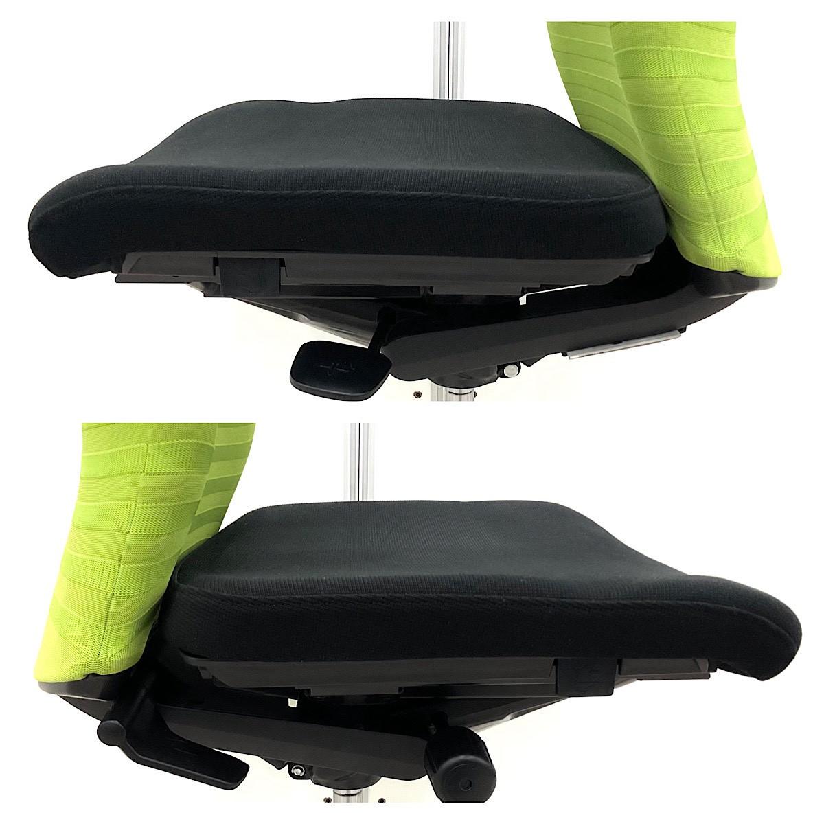 - 深く座りたい人、浅く座りたい人など利用者にあった形で座面が前後45mm範囲で調節できるので、腰の負担を軽減します。