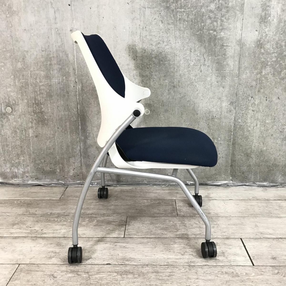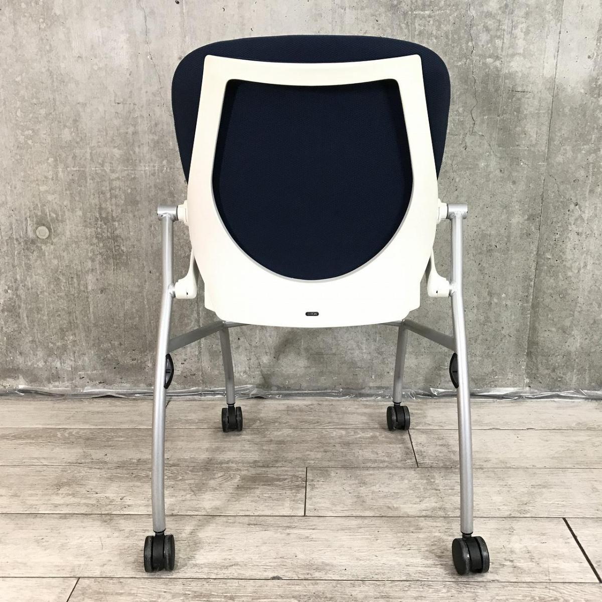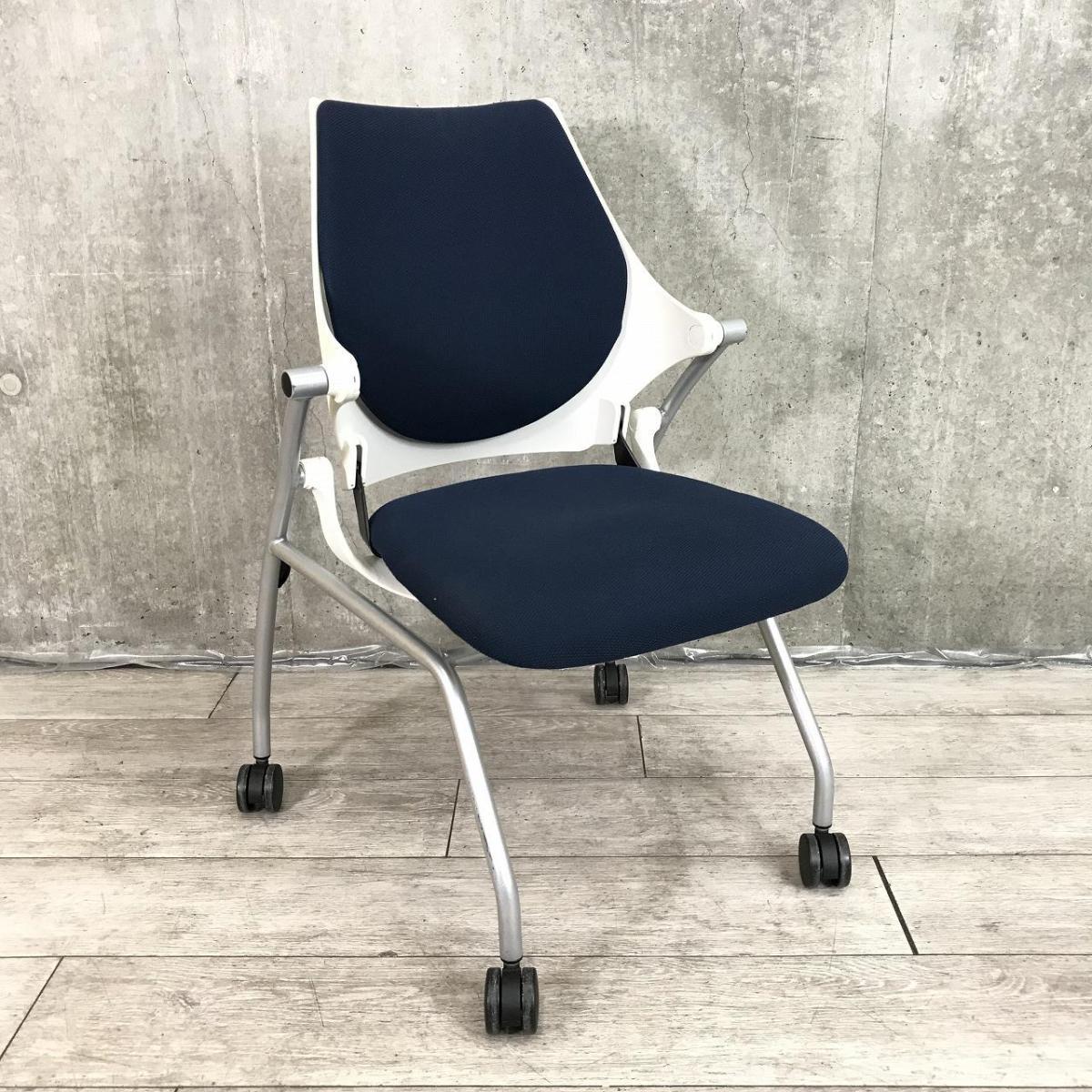 【疲れにくく快適な座り心地を追求!】■イトーキ(ITOKI)製 イプサシリーズ ネスティングチェア ミーティングチェア キャスター付 ■ネイビーブルー×ホワイトシェル 【平行スタックで省スペース!】