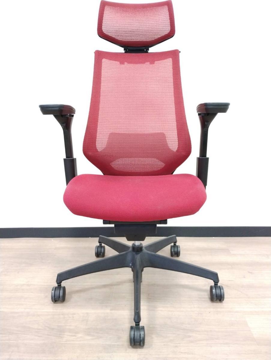 【スタイリッシュなデザインに心地よい座り心地!】■コクヨ デュオラチェア 可動肘付 レッド ヘッドレスト付 ■様々な姿勢に柔軟にフィットする高機能ワーキングチェア!【KOKUYO Duora】