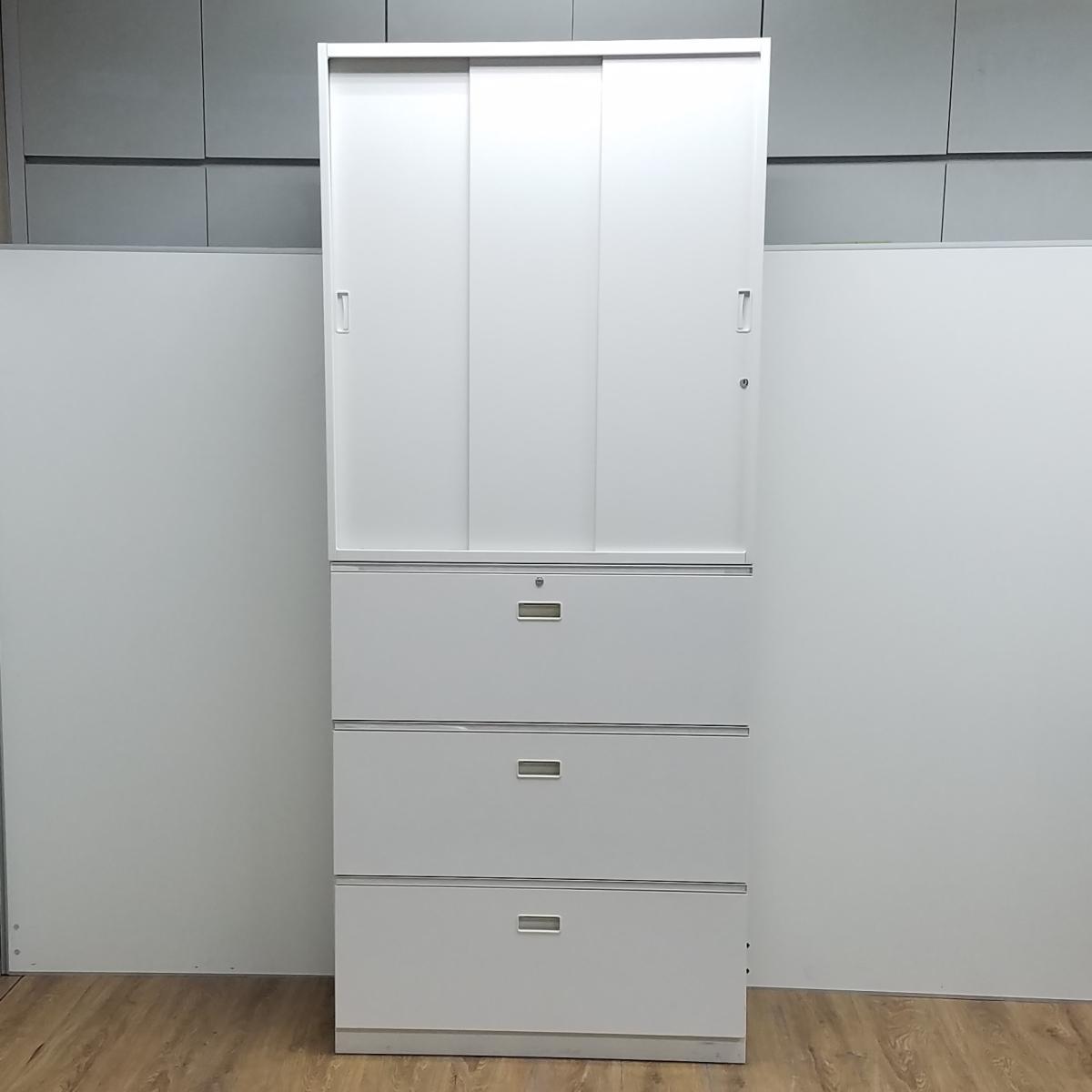【省スペース化に嬉しい味方!2つ重ねてセットでの使用!】■イトーキ(ITOKI) シンライン(THIN LINE) 引き違い(2枚引戸)+3段ラテラル ■ホワイト【AD】